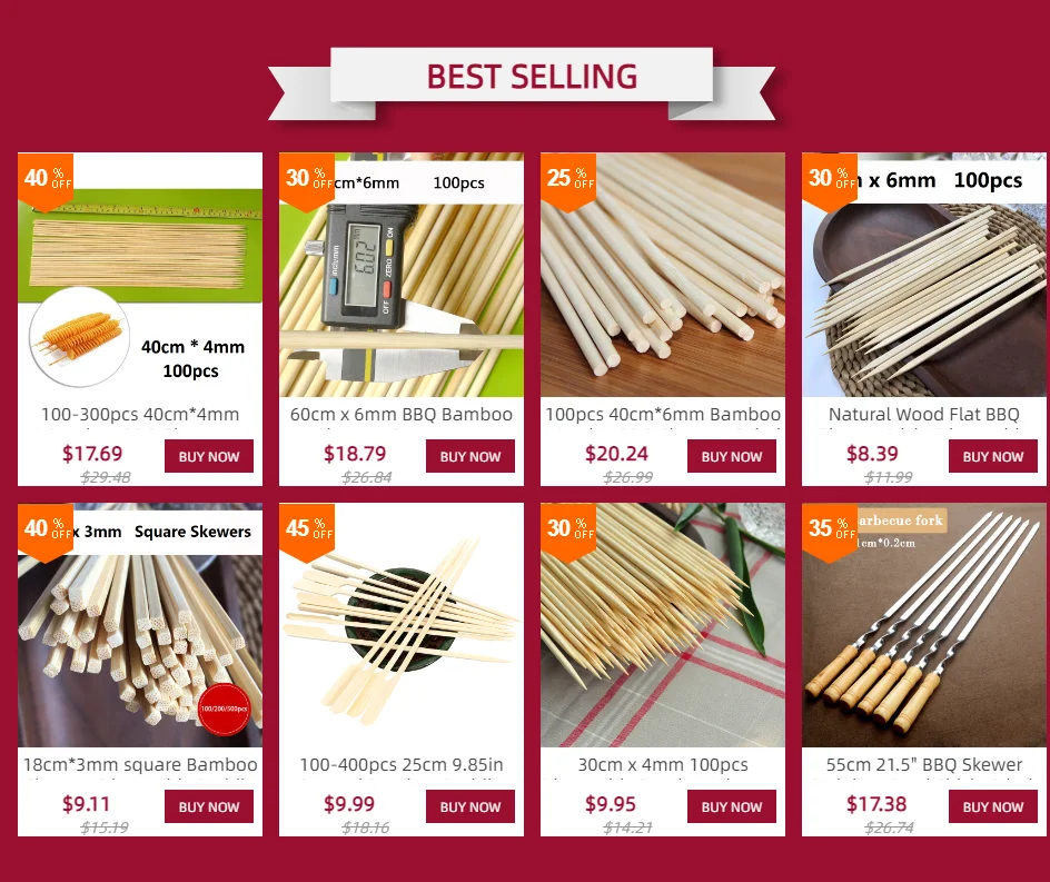 Package:100pcs x 40cm * 6mm Bamboo BBQ Skewers