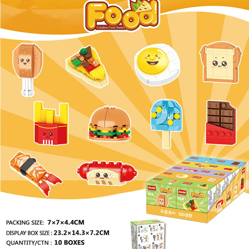 10in1 Cute Architectural Street View Foods Fries Snacks Fruits Animals Building Blocks Kit Girl Bricks Model Kids Toy Children