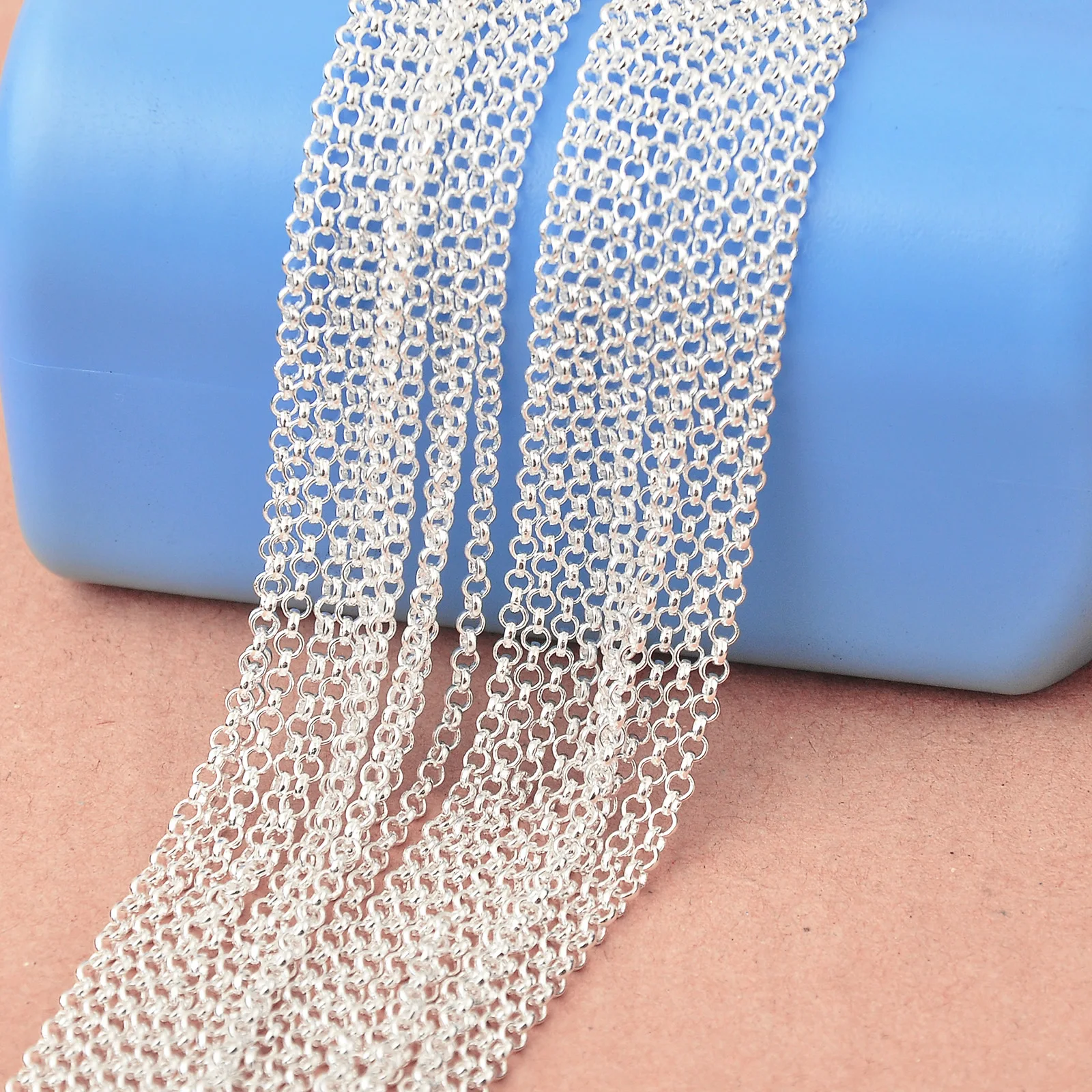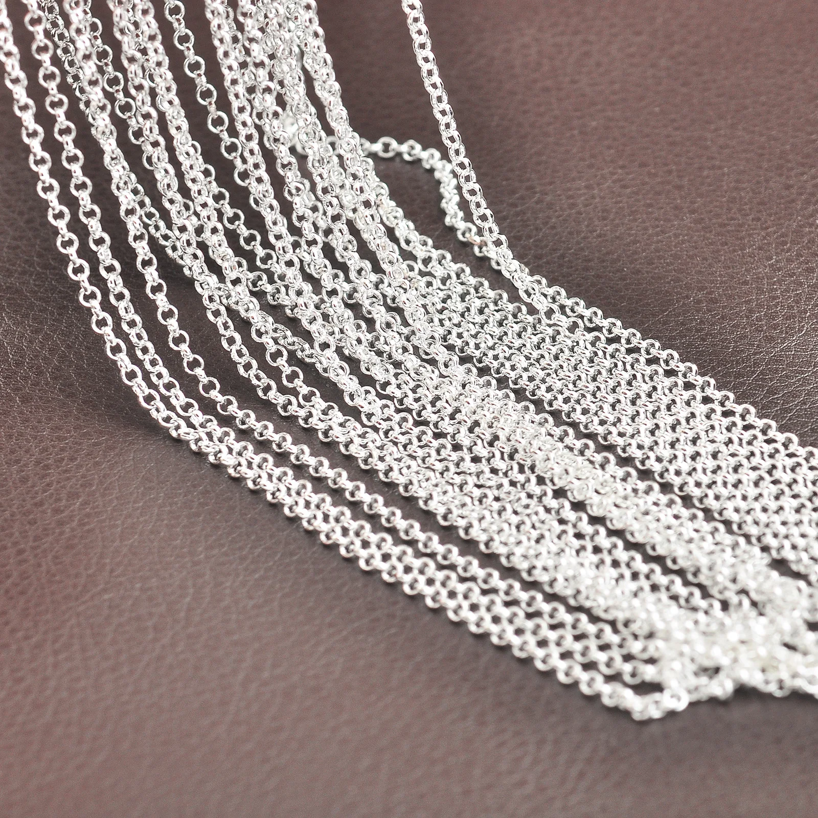 10PCS Wholesale Pure 925 Sterling Silver Color Charm Link Chain Necklace Jewelry with Strong Smooth Lobster Clasps 16-30 Inch