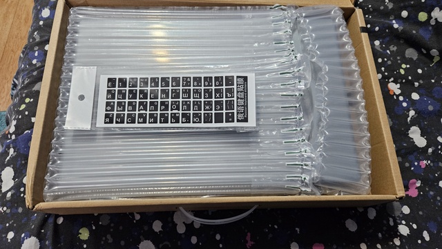 — Our keyboard is QWERTY English standard version, but we will send keyboard stickers of other languages below as a gift. If you need it, just leave us a message. Keyboard stickers: Russian, Spanish, French, German, Italian, Hebrew, Arabic, Turkish, Thai, Japanese, Korean.