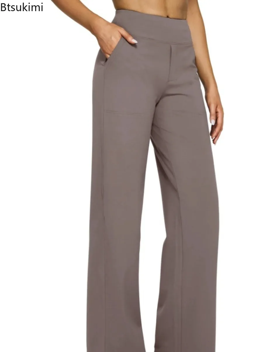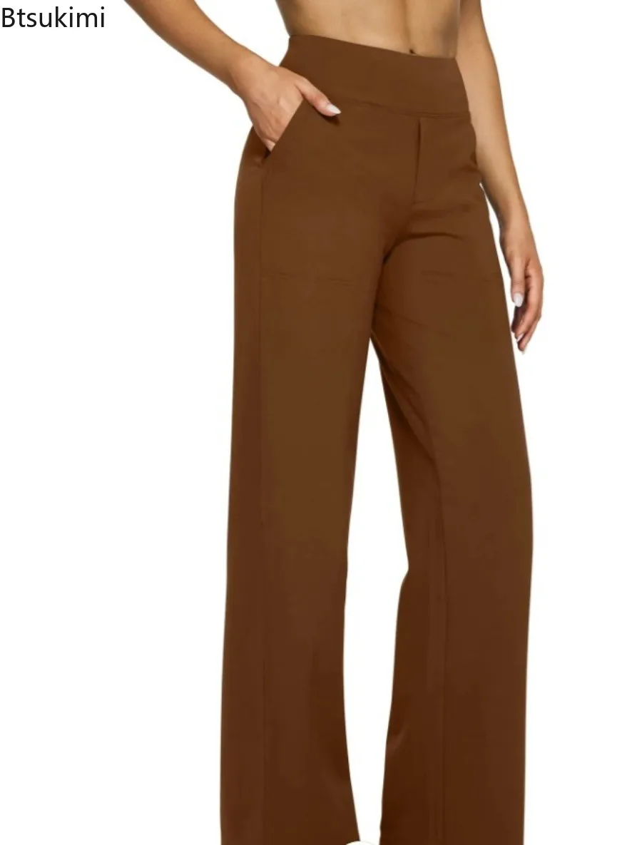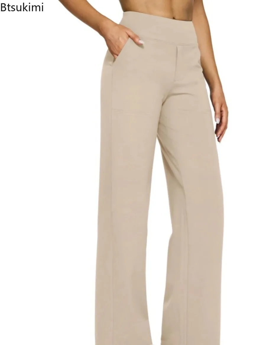 2025 Spring New Casual Loose Straight Leg Pants Women’s High Waist Pocket Comfortable Fit Business Long Trousers Fashionable