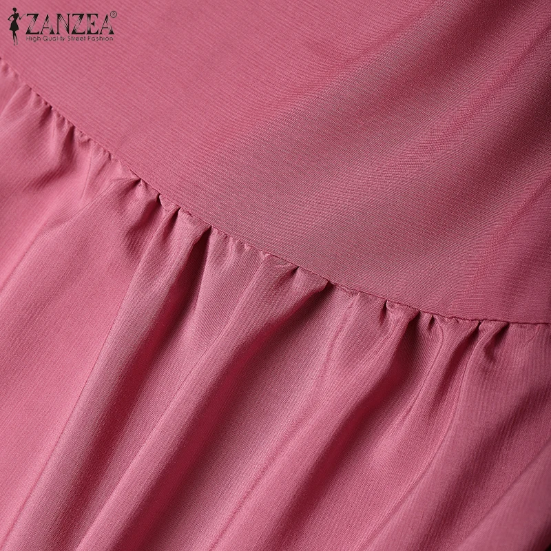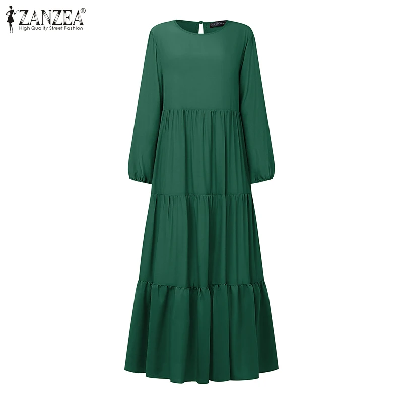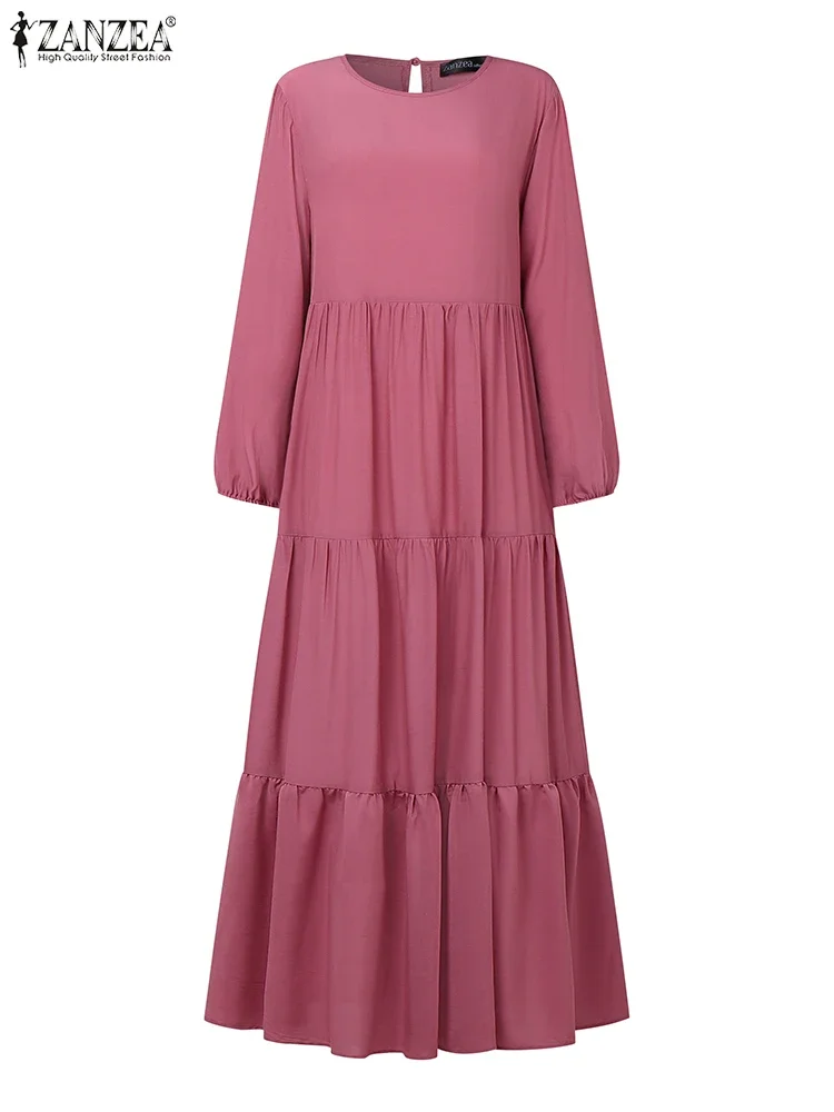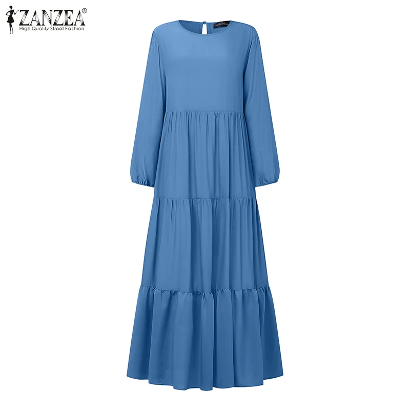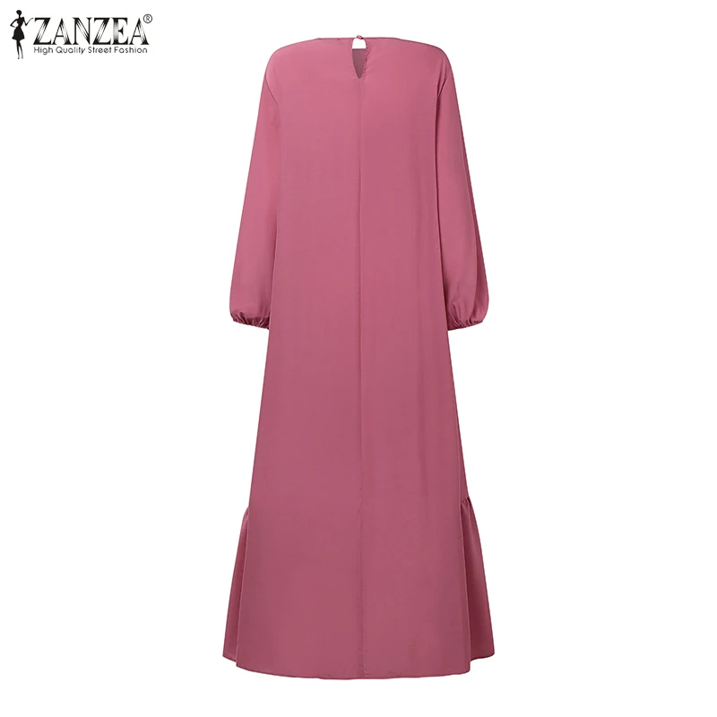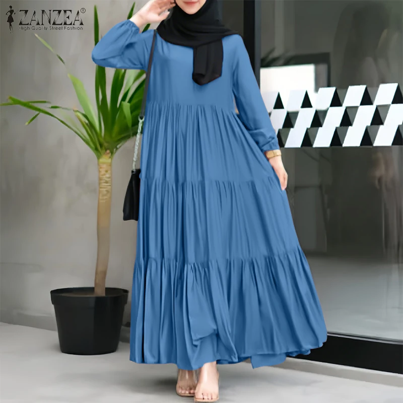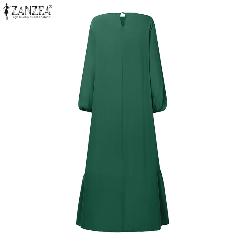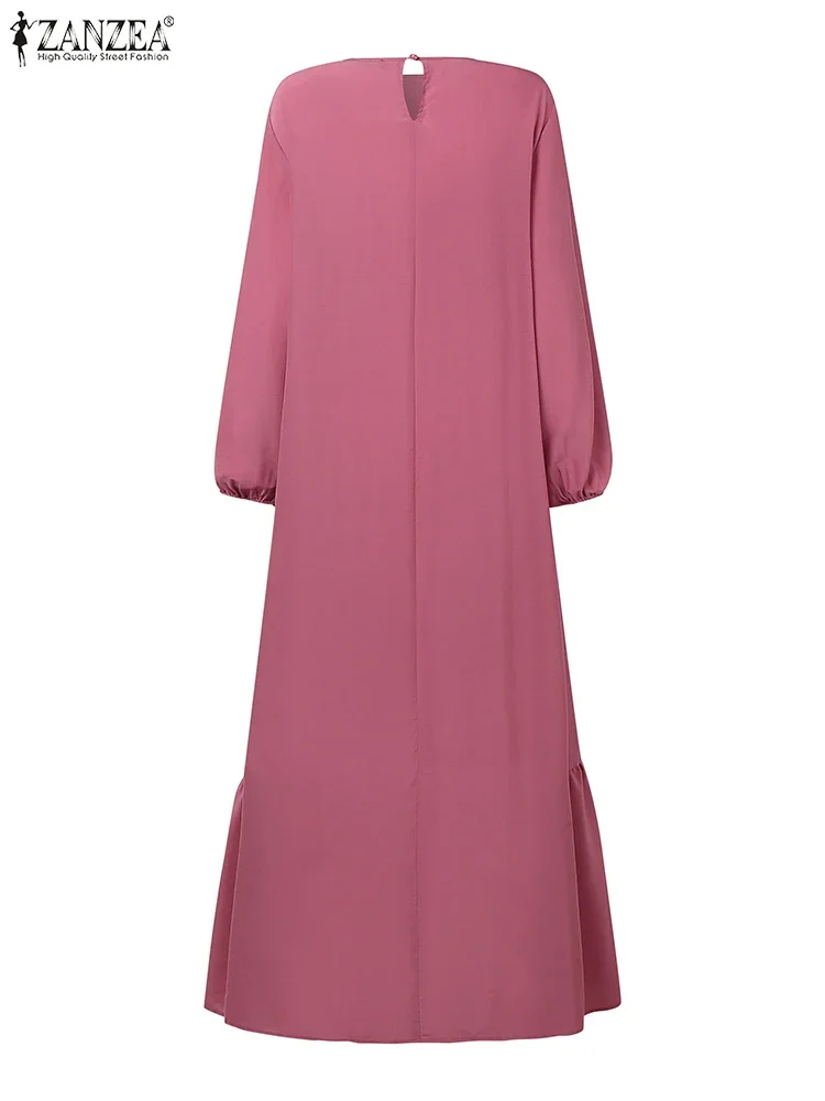 2025 ZANZEA Muslim Hijab Dresses Abaya Summer Women Long Sleeve Maxi Sundress Islamic Robe Vestidos Eid Mubarek Maxi Long Dress