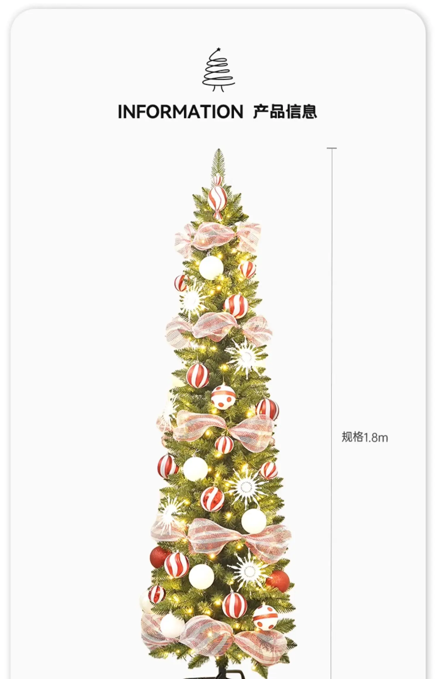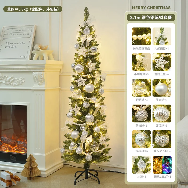 2026 Pencil Christmas Tree with Luxury Decorations Slim Xmas Tree for Home DIY Holiday Ornament Modern Festive Living Room Decor