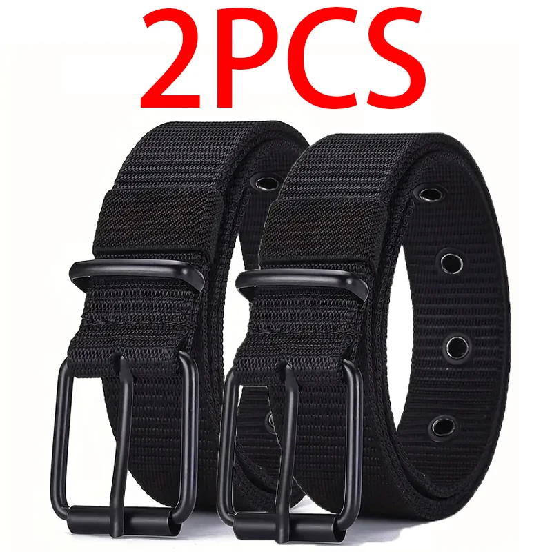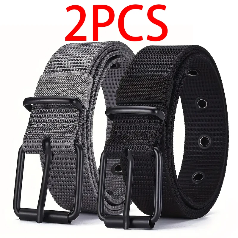 2pcs Men’s casual canvas belt, golf belt, durable outdoor sports pants belt, jeans belt, suitable for daily leisure and sports