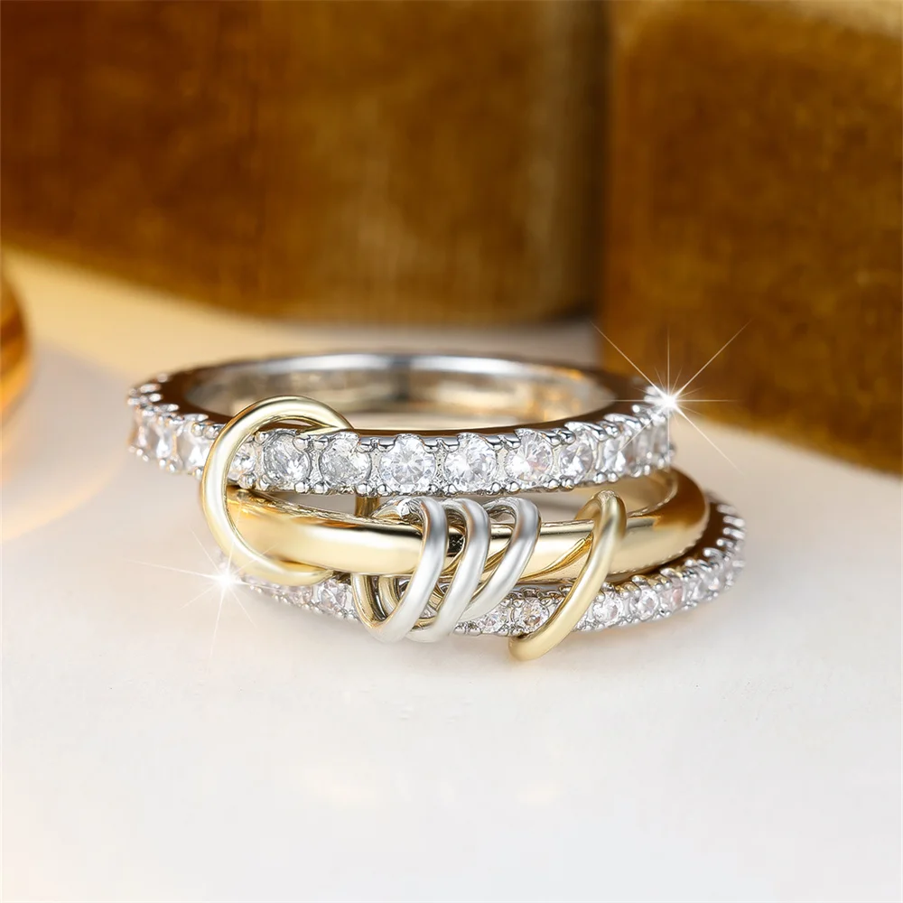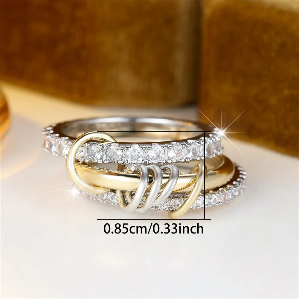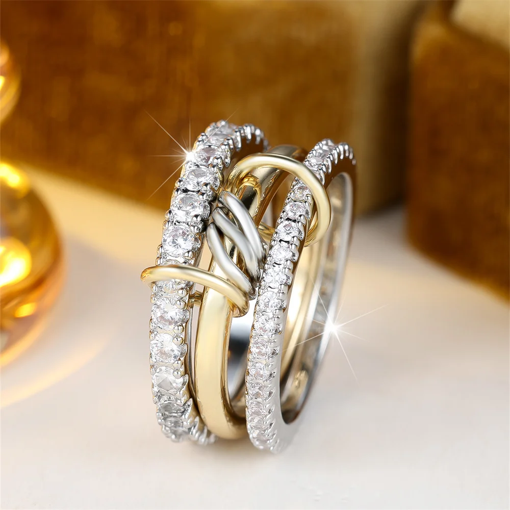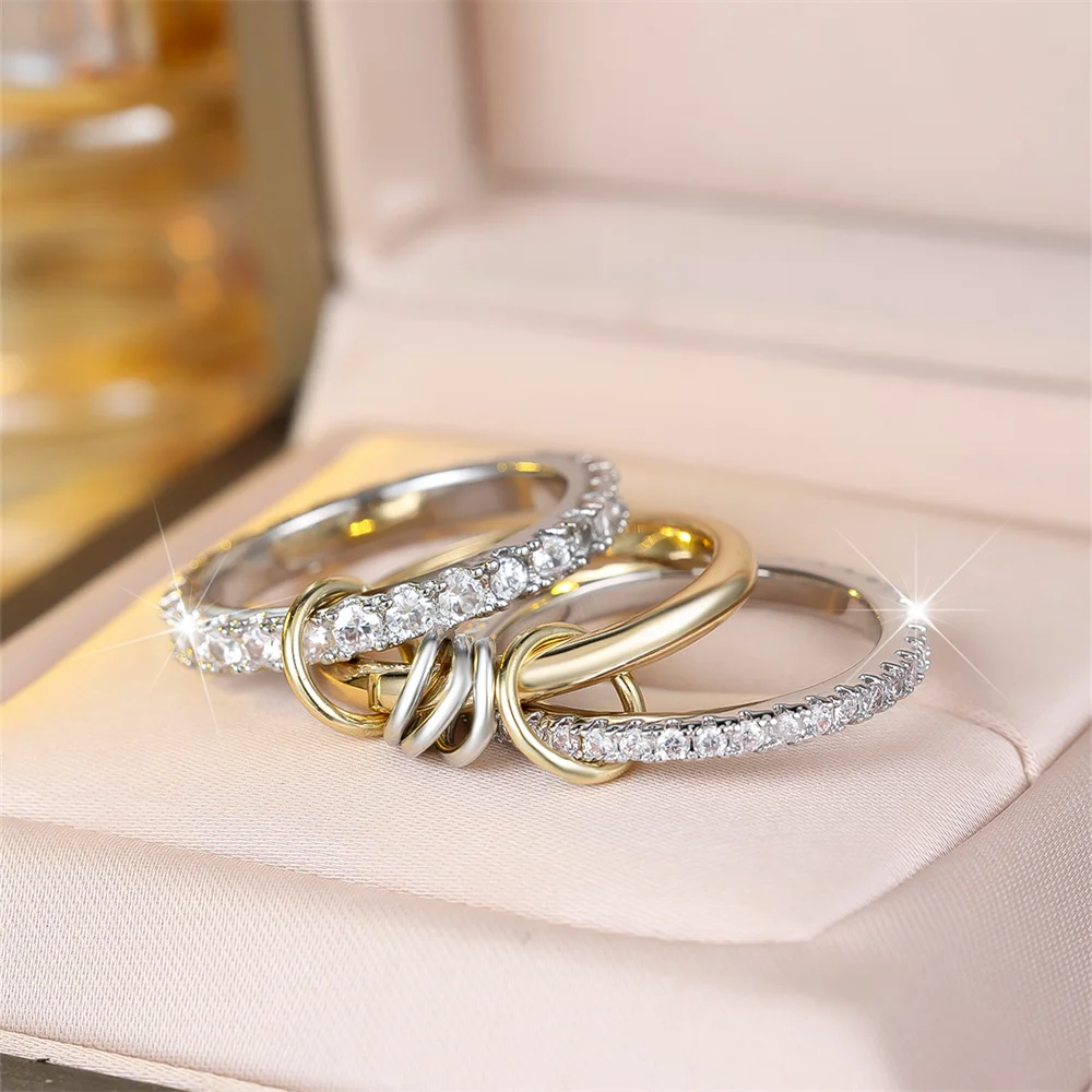 3pcs/set Round Stone White Zircon Ring Sets For Women Gold Silver Color Engagement Rings Wedding Jewelry Bridal Versatile Gifts