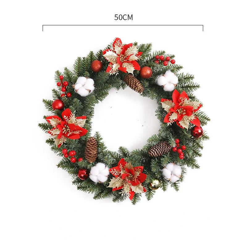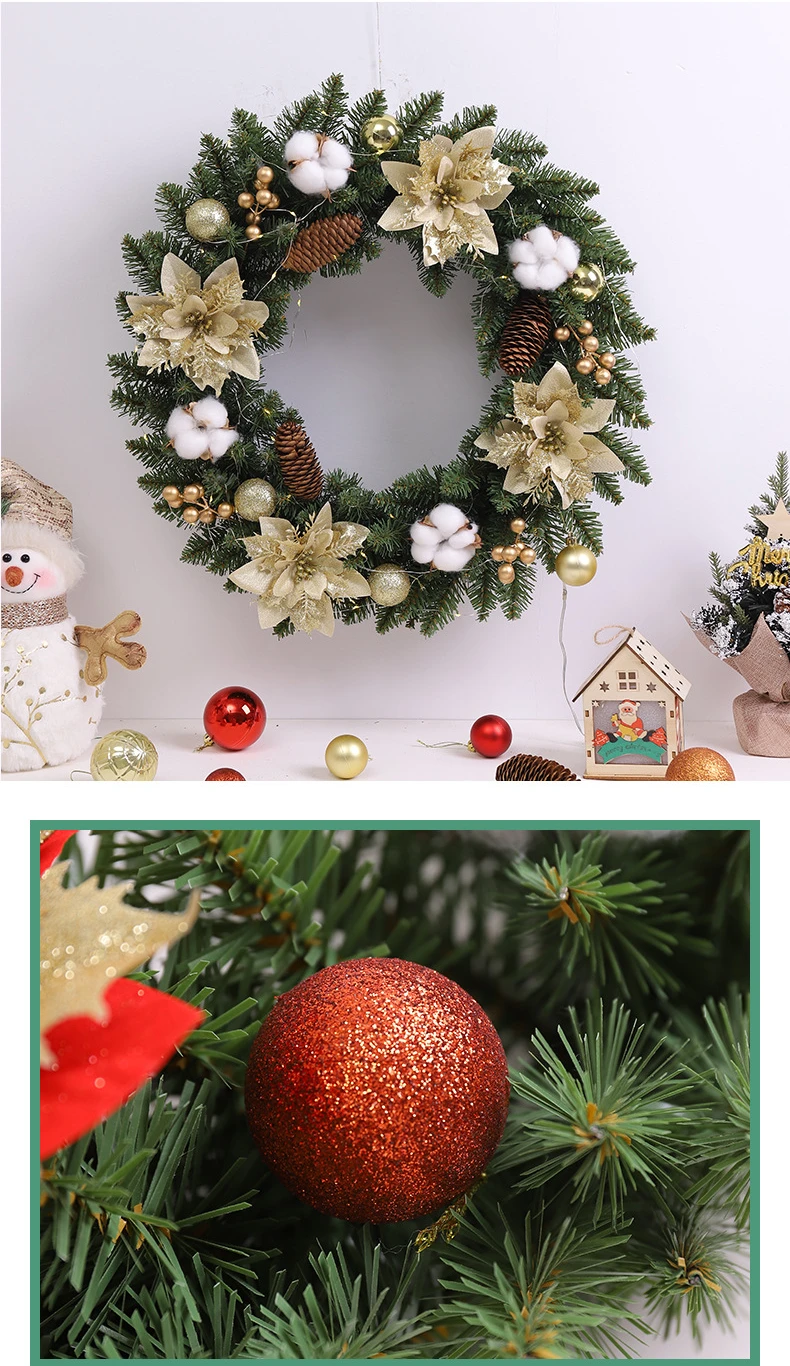 40/50cm Christmas Wreath Artificial Flowers Pinecones Front Door Hanging Garland Golden Balls Xmas Party Home Decorations