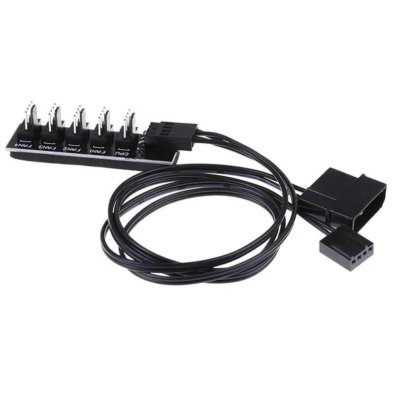 40cm 1 to 5 4-pins PWM CPU Cooler/ Case/ Chasis Cooling Fan Power Cable Hub Splitter Adapter Black Sleeved Jacket