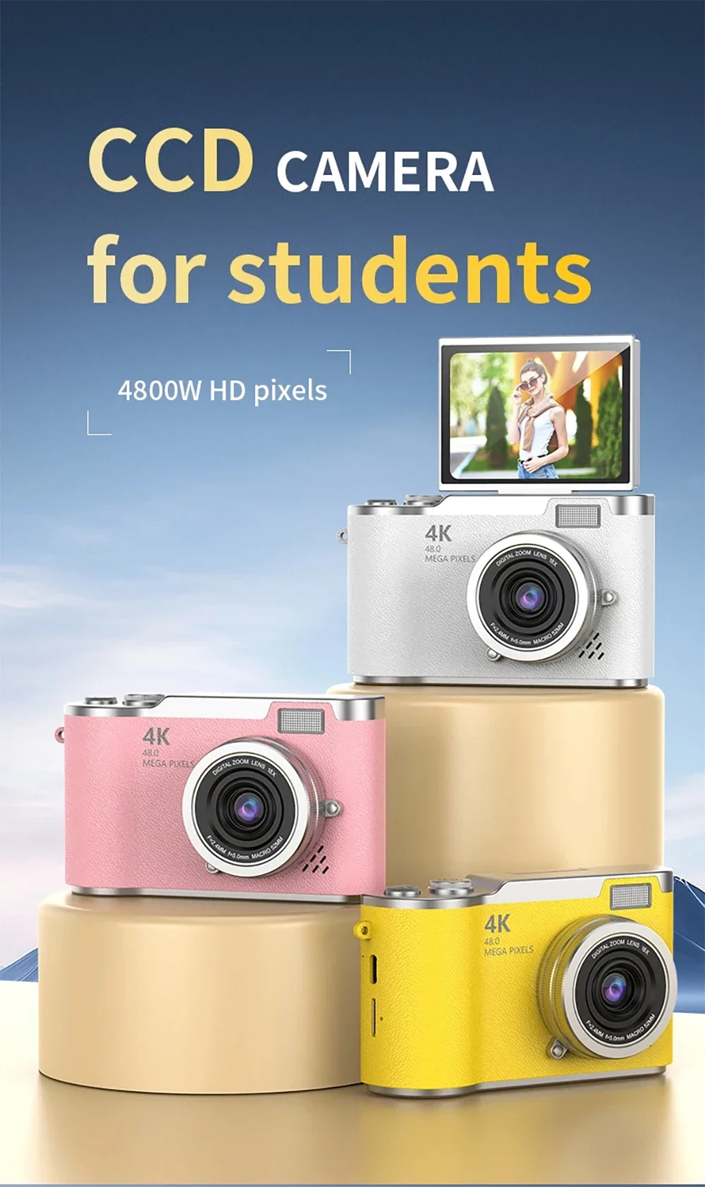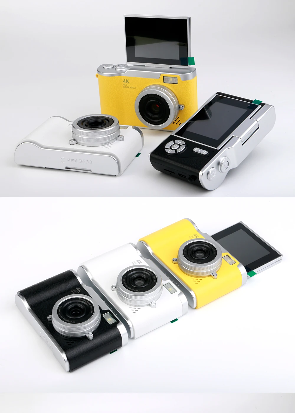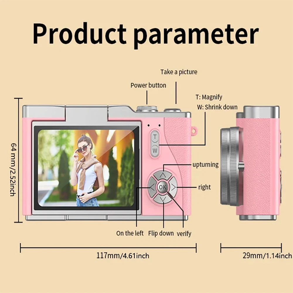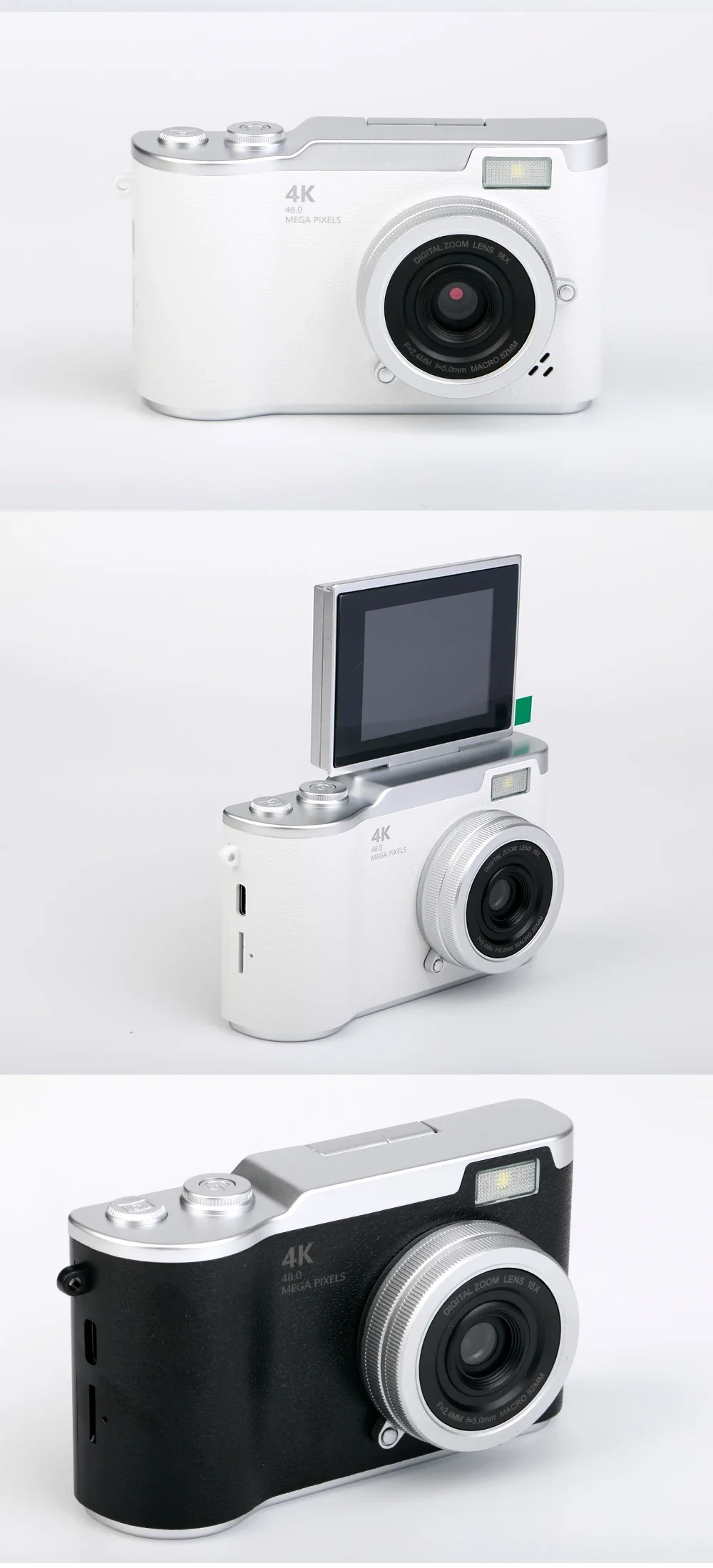 4K Digital Camera 48MP Resolution 8x Digital Zoom 180° Flip Screen Selfie Camera Student CCD