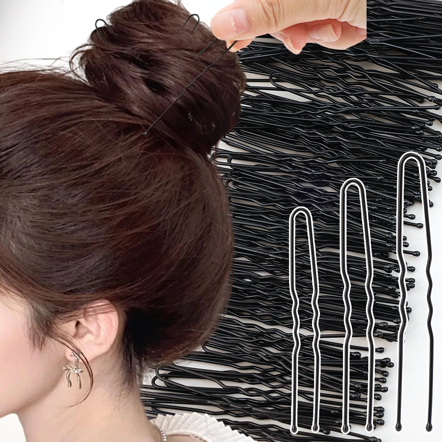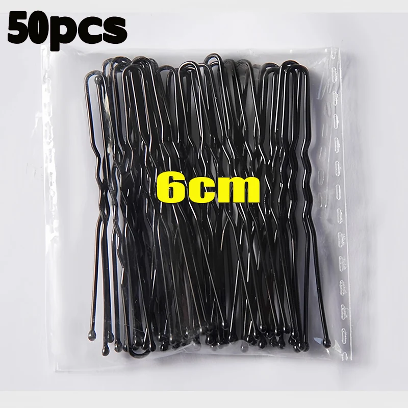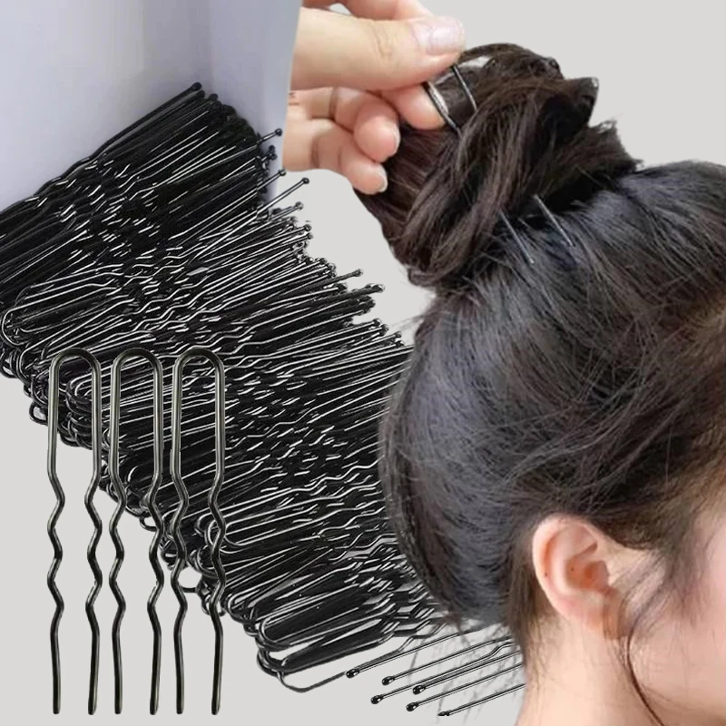 50/200Pcs New Women Hair Waved U-Shaped Bobby Pin Barrette Salon Grip Clip Bridal Hairpins Black Metal Hair Accessories for Bun