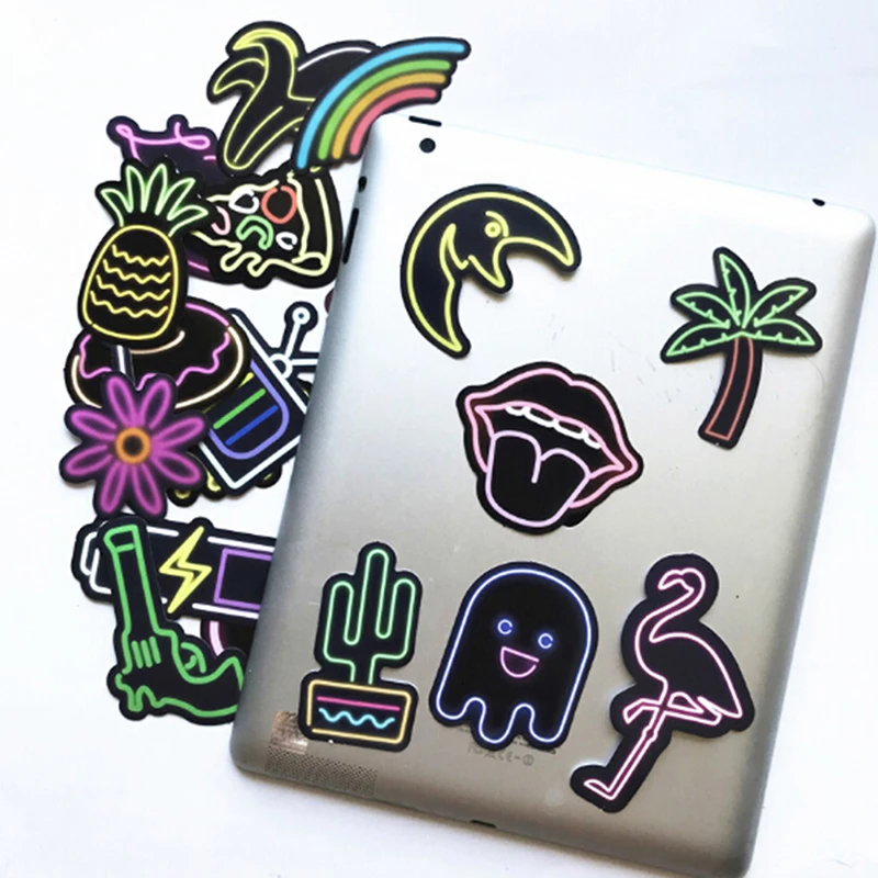 Package include: 21*neon light style cute stickers/50*neon light style cute stickers