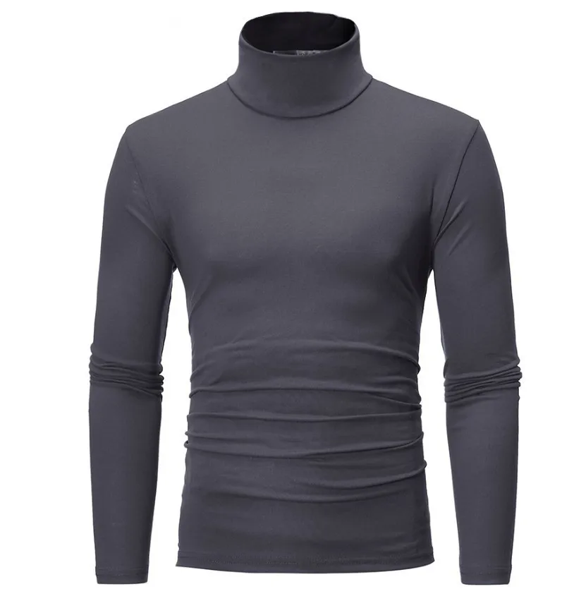 Autumn Winter Men's High Neck T-shirt Slim Fit Fashion High Elastic Long Sleeve Cotton Casual Breathable Apparel Pullover
