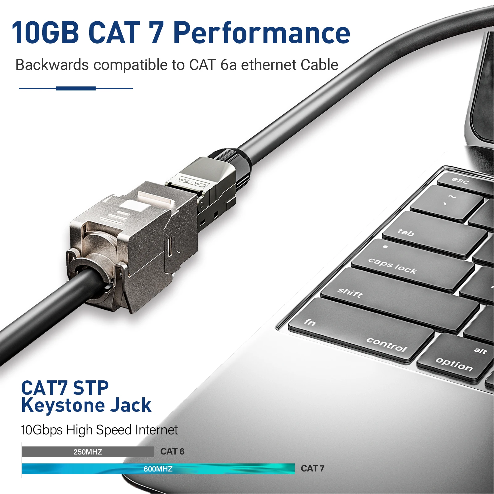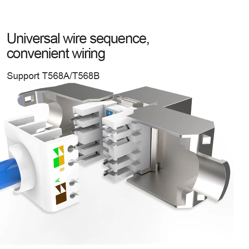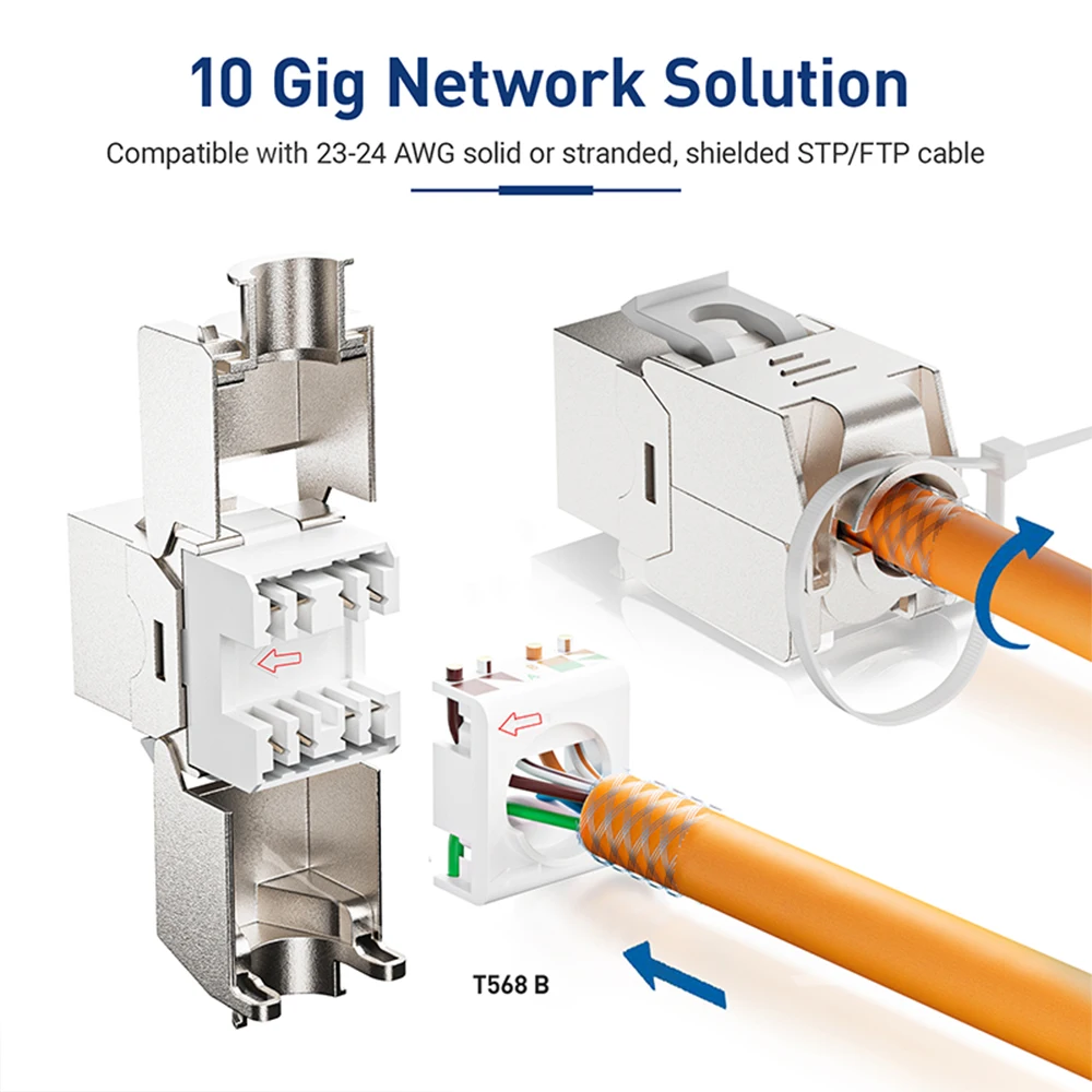 Cat7 RJ45 STP Tool-Less Cat6a Cat7 Keystone Jack Type Zinc Alloy Module Jacks Adapter Coupler for 22 to 26 AWG