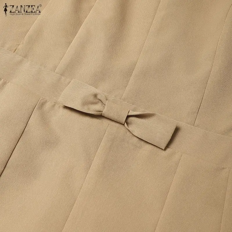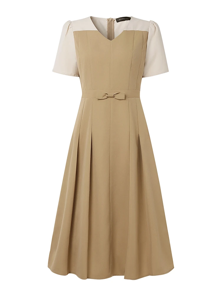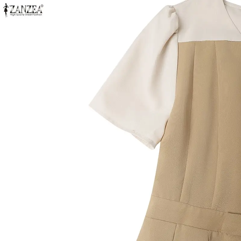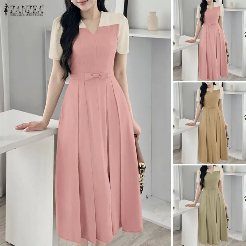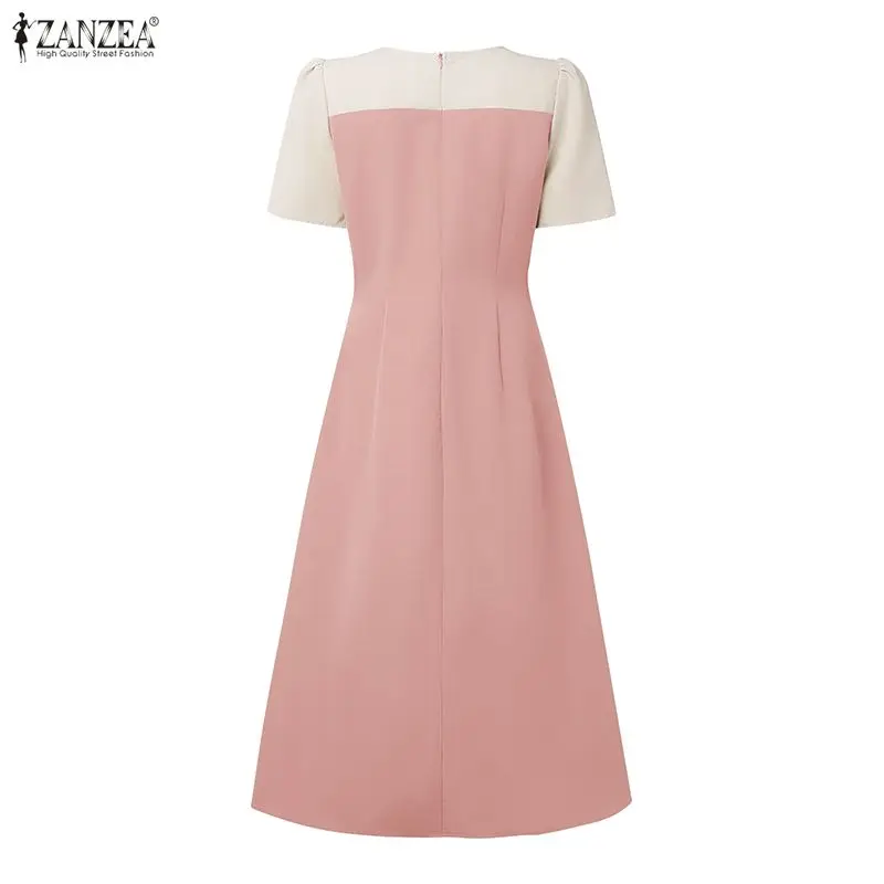 Elegant Women Midi Dresses 2025 ZANZEA Summer Dress Stylish V Neck Party Dress Short Sleeve Patchwork Work Sundress Pleated Robe