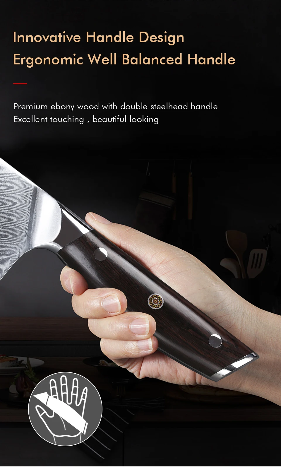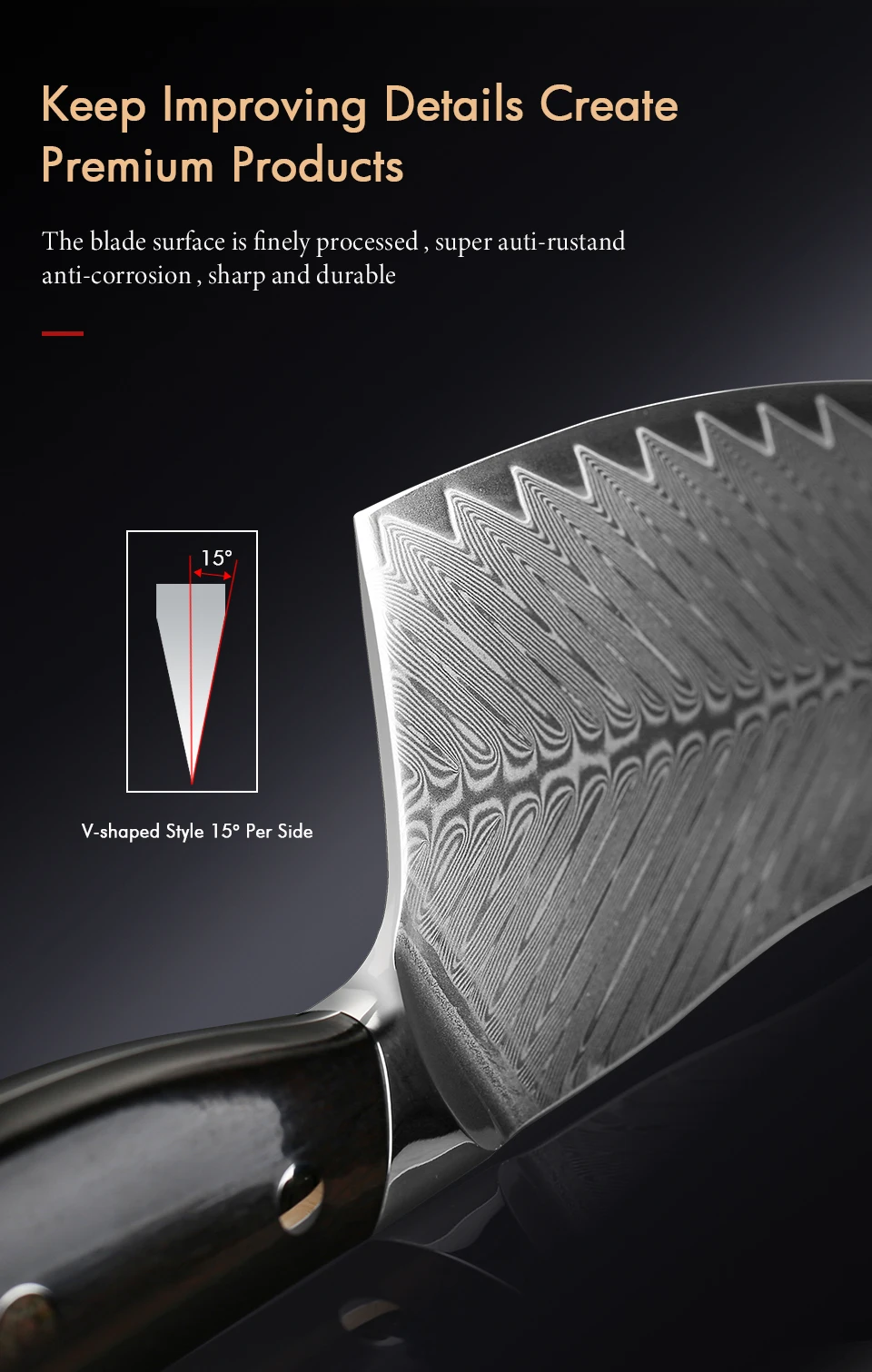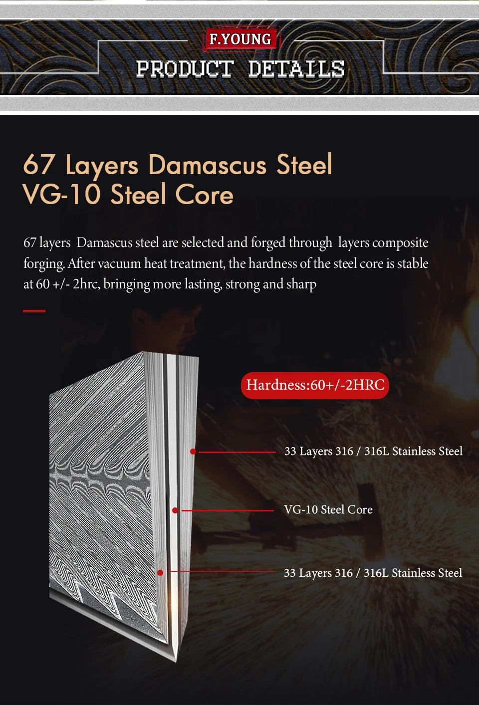 F.YOUNG 7-inch Professional Kitchen Knife 67 Layers Damascus Steel Chef knife Japanese Cooking Tools Vegetable Cutting Meat Cleaver