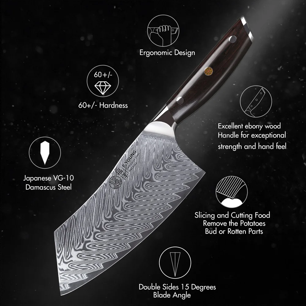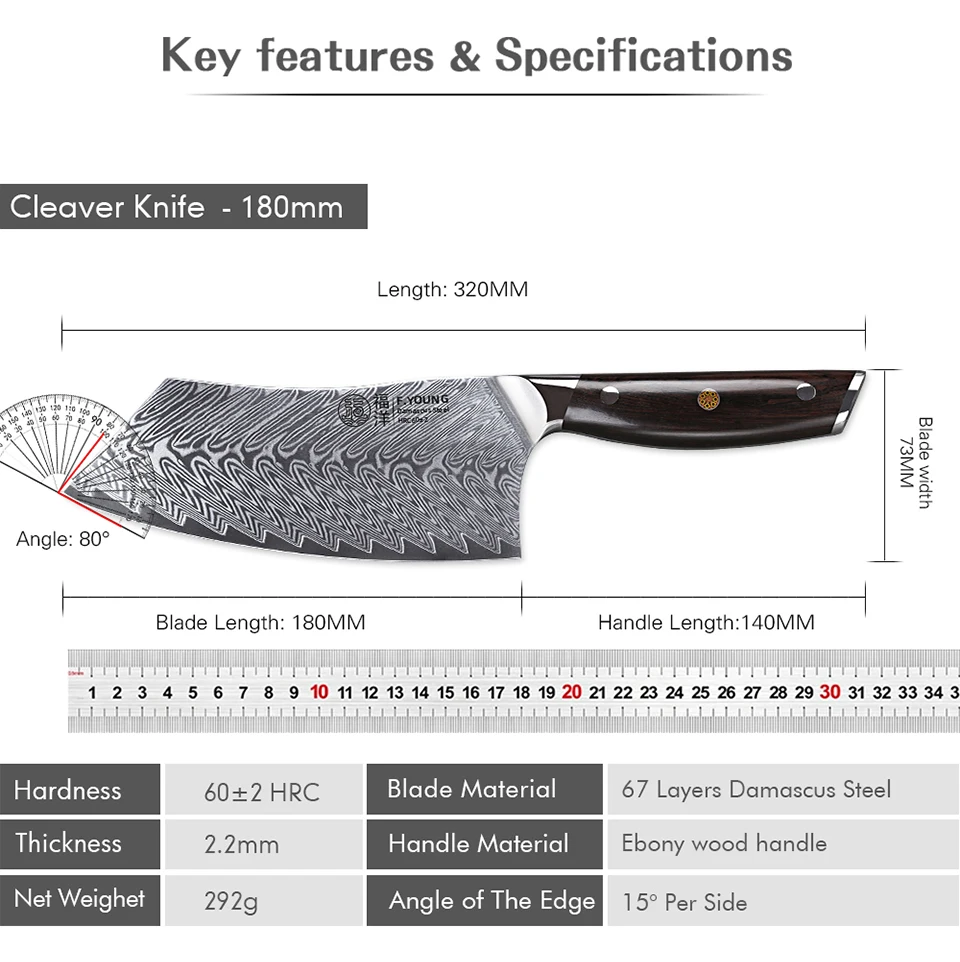 F.YOUNG 7″ Professional Kitchen Knife 67 Layers Damascus Steel Chef knife Japanese Cooking Tools Vegetable Cutting Meat Cleaver