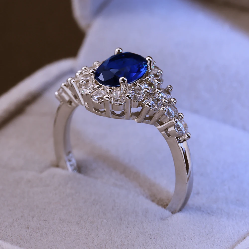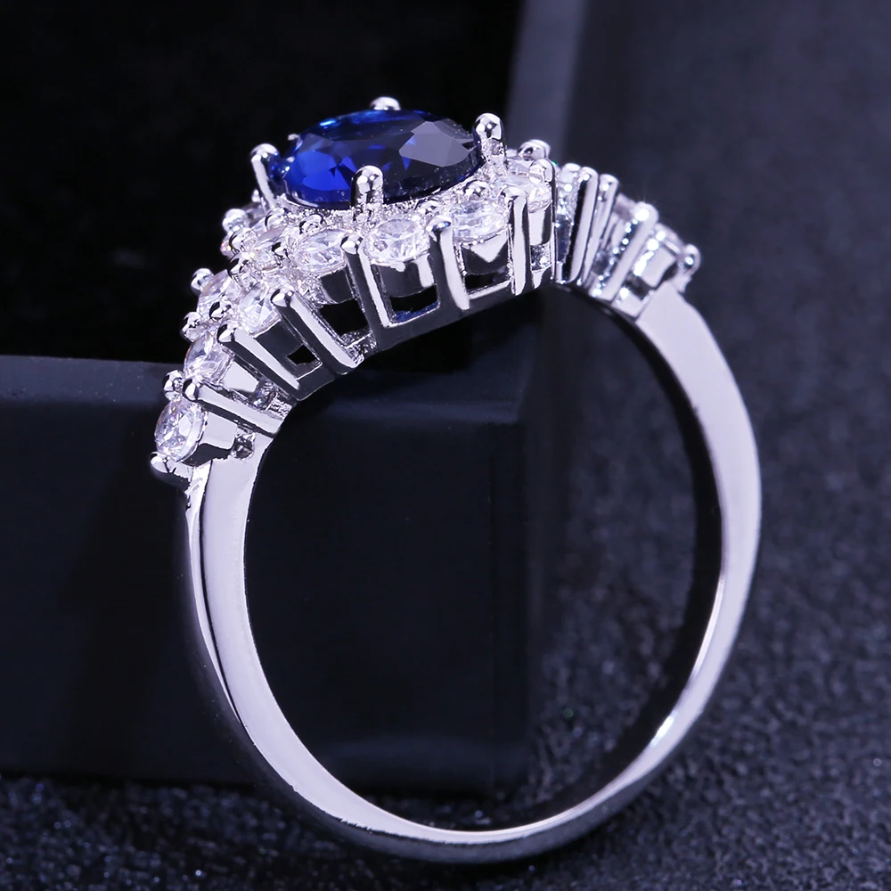 Huitan Dark Blue Series Charms Female Finger Rings Luxury Engagement Party Jewelry For Bride Shiny Brillaint Cubic Zircon Ring
