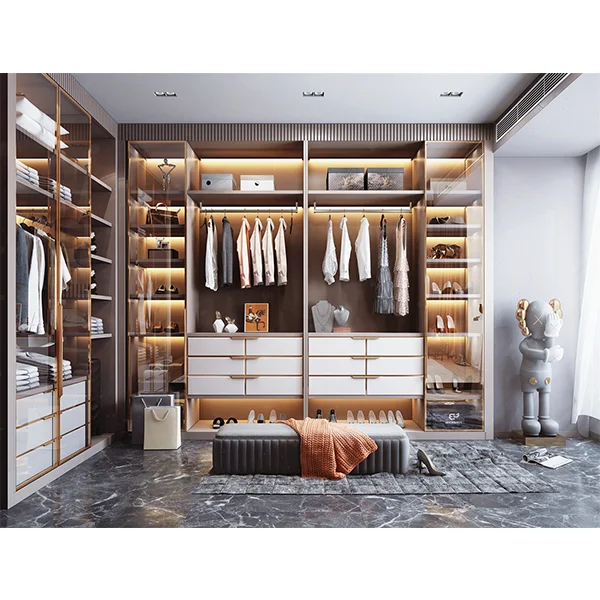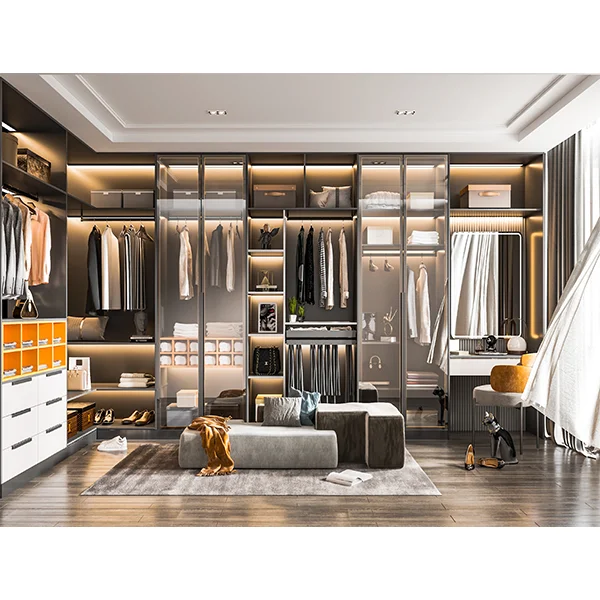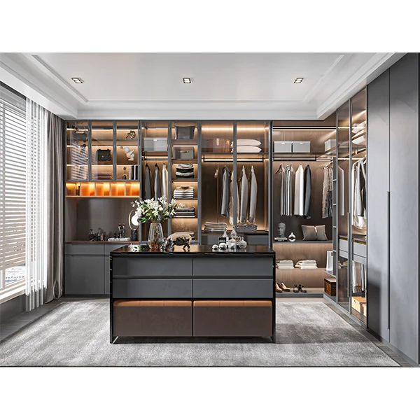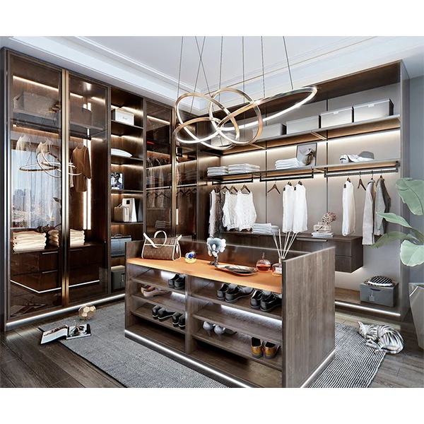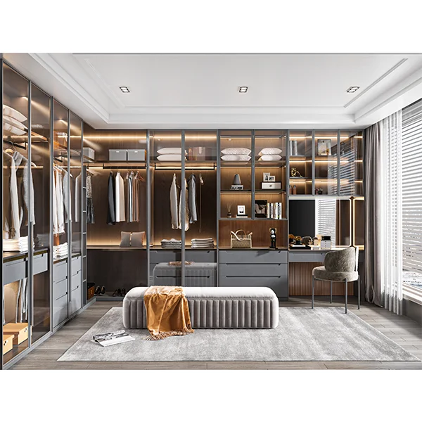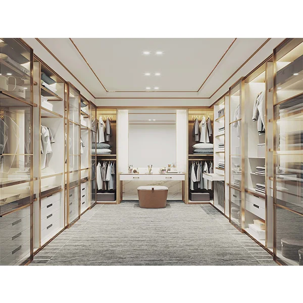 Italian Style Open Cloakroom U Shape Wardrobe Cabinet Metal Glass Door Walk-in Wardrobe Clothes Closets
