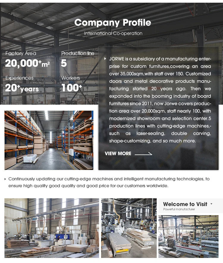 1.Q:About JORWE A:We are a manufacturer with 14 years of experience in producing wardrobes, TV stands, wine cabinets, and other panel furniture cabinets.