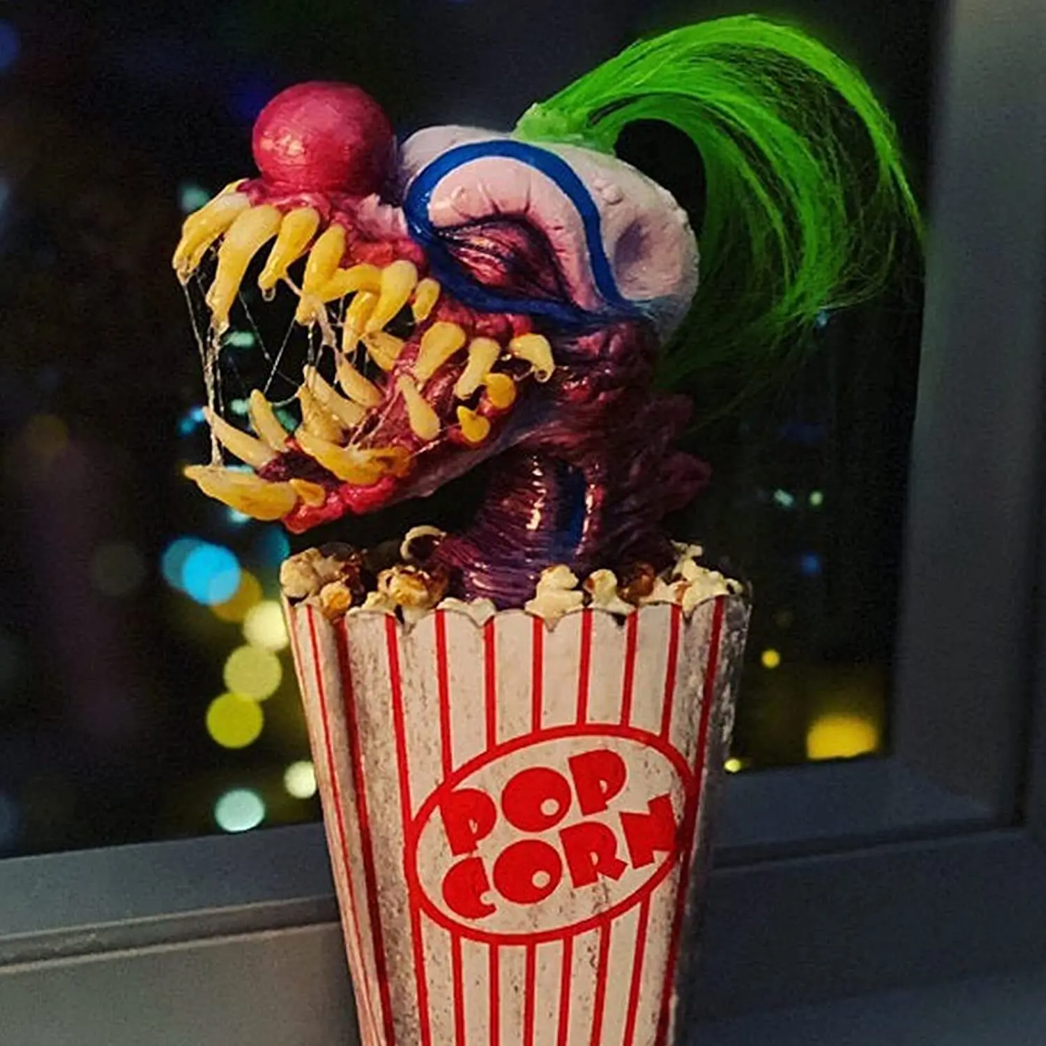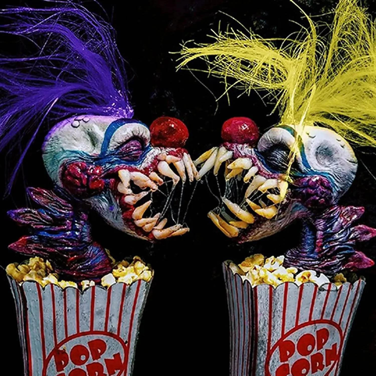 Killer Klowns from Outer Space,Popcorn Klown,Head-Creepy Killer Clown Head Horror Prop Ornaments Collection Crafts Decoration