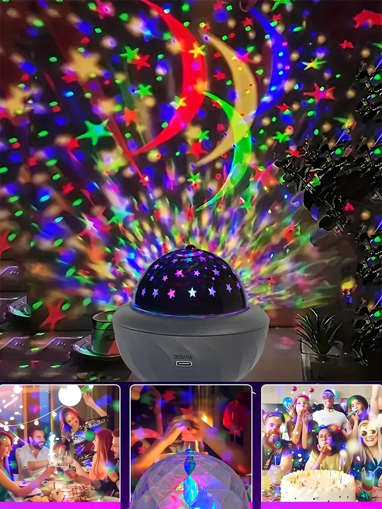 LED Night Light USB Auto Rotating Christmas Party Star Moon Projection Lamp Galaxy Projector Lamp Room Decorations Birthday Gift