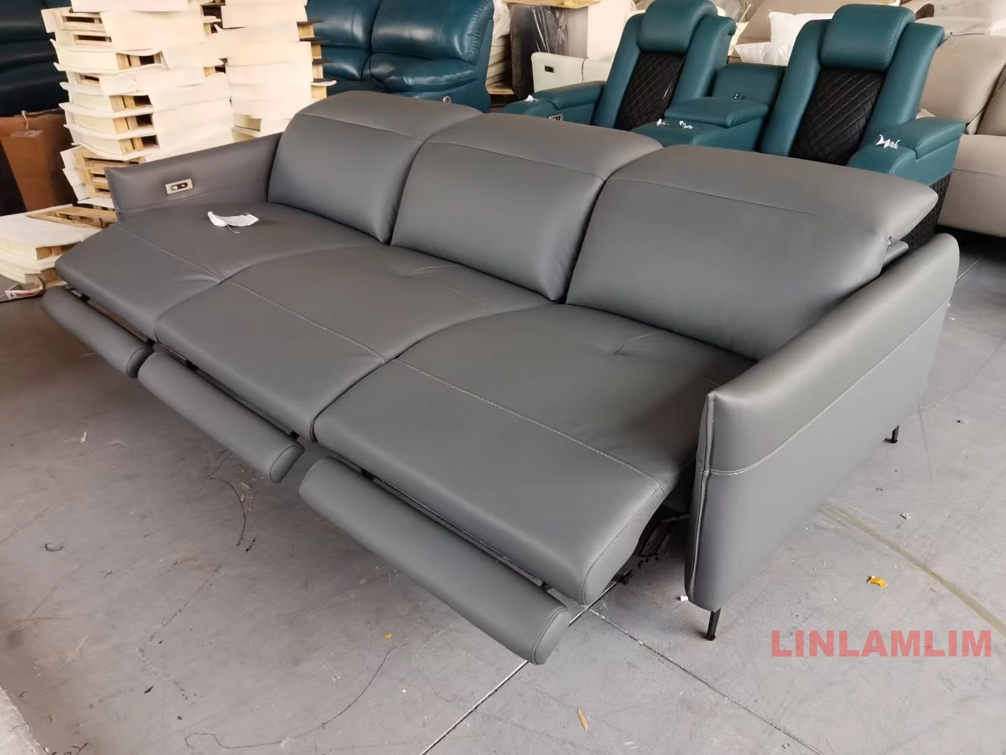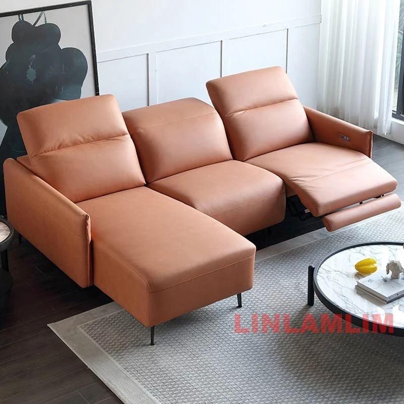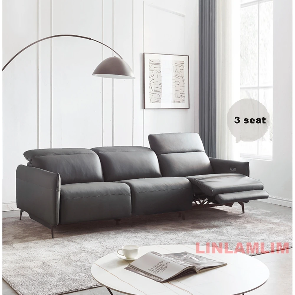 Luxury 3-Seater Genuine Leather Dual Motors Electric Recliner Sofa Modern Power Reclining Couch Adjustable Backrest and Headrest