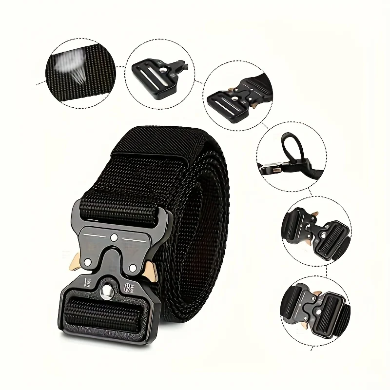 Men’s casual belt with adjustable plastic buckle – durable black sports belt suitable for hiking, football matches, casual wear,