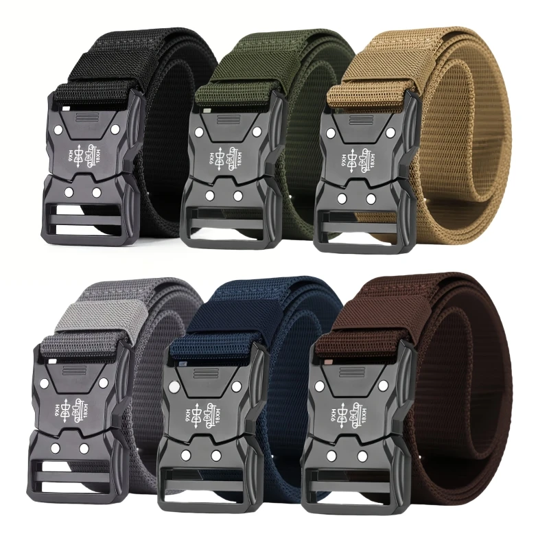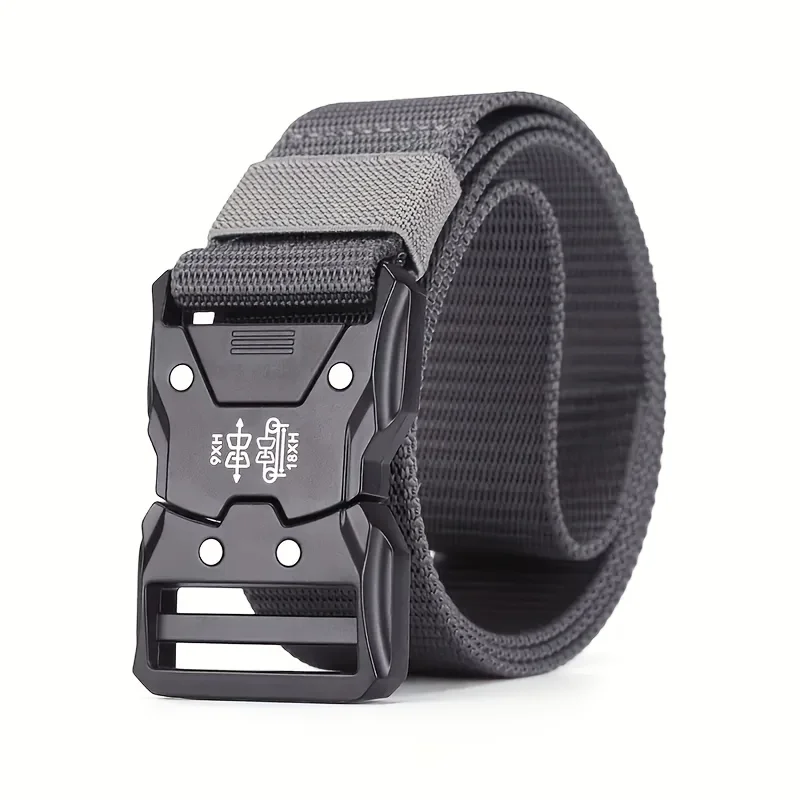 Men’s fashionable waist belt, metal buckle, durable PP material, black, suitable for outdoor and casual wear, perfect for hiking