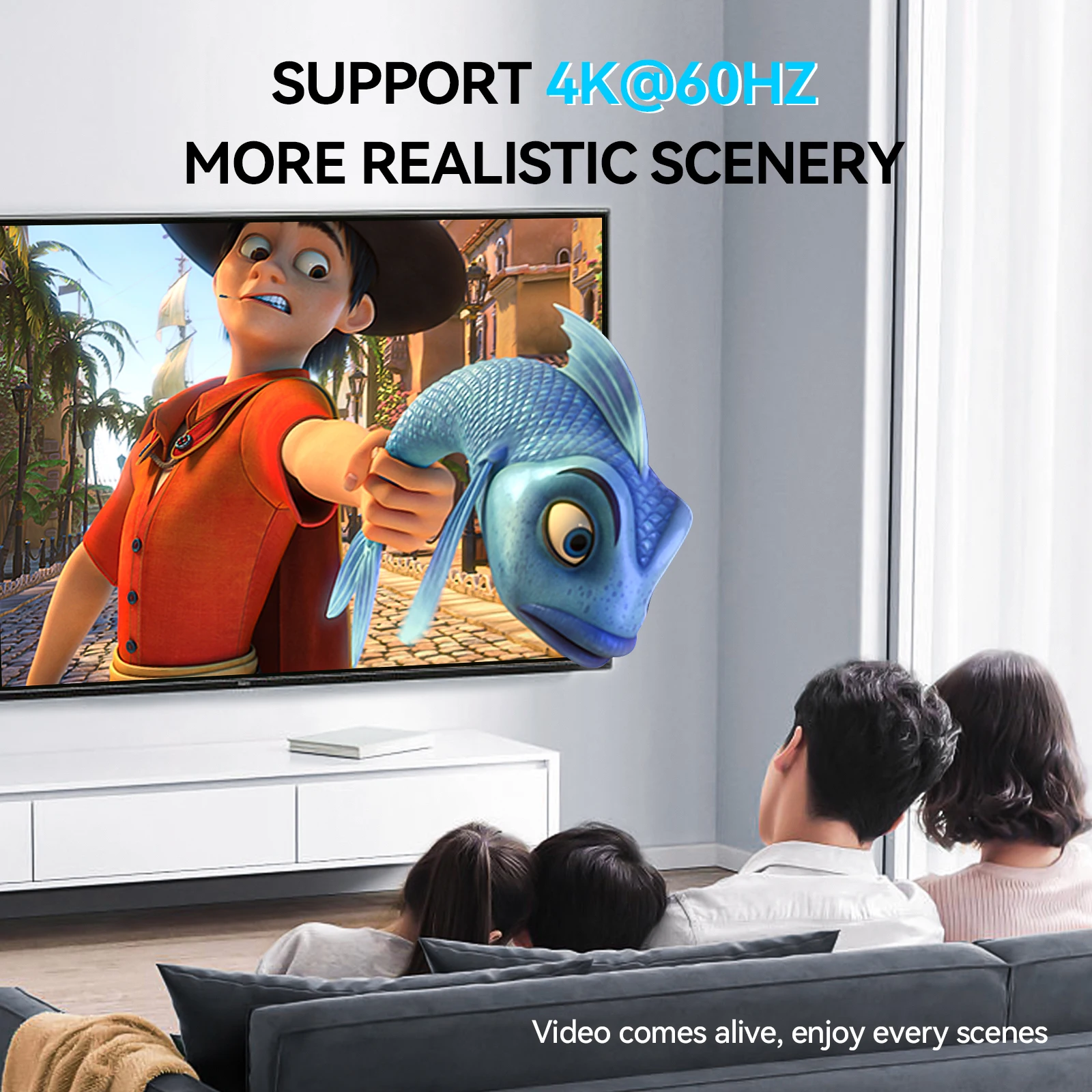 【High Resolution】: Support 4K/2K@60Hz. This HDMI splitter can let you enjoy the most cinematic video and audio. (Please use standard HDMI 2.0 cable to connect devices)