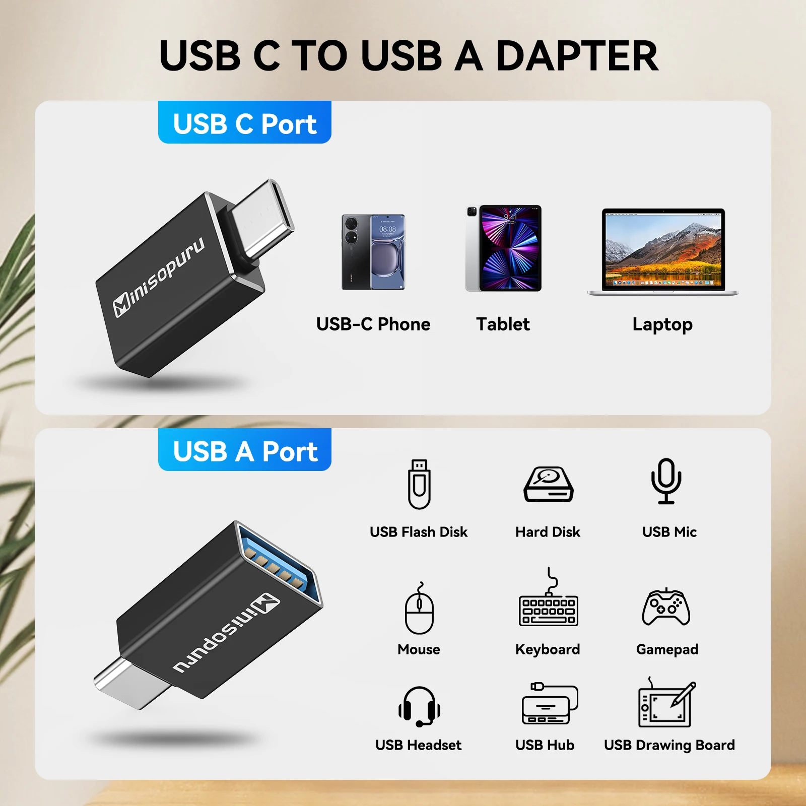 Minisopuru USB C to USB Adapter USB C Male to USB 3.0 Female OTG Converter for MacBook Pro iPad iphone Adapter