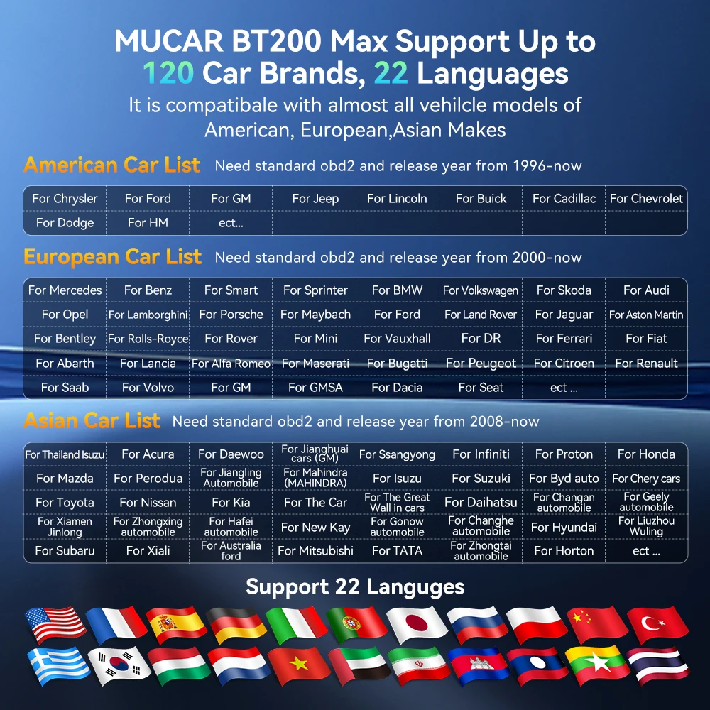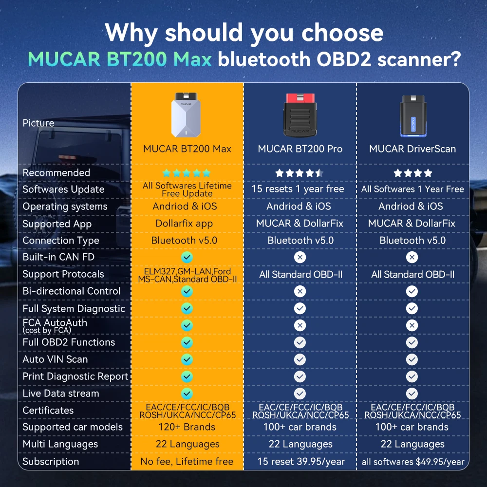 ✅ MUCAR BT200 Max supports CANFD, EML327,GM-LAN and MSCANproprietary vehicle networks that provide access to thousands of additional parameters that are off-limits to all other wireless OBD scanners.