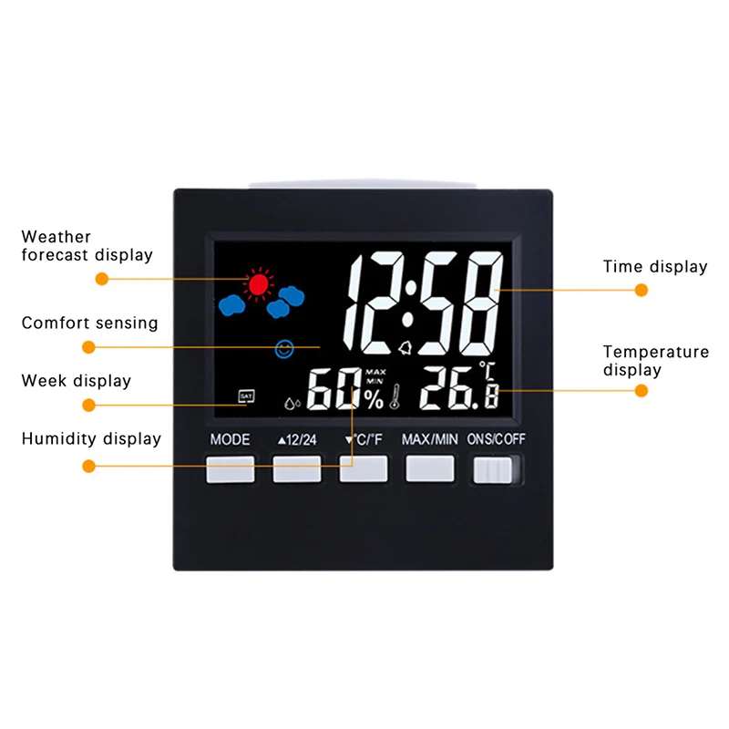 Multi-functional Weather Station Clock Thermometer Hygrometer Calendar Digital LCD Display Temperature And Humidity Meter