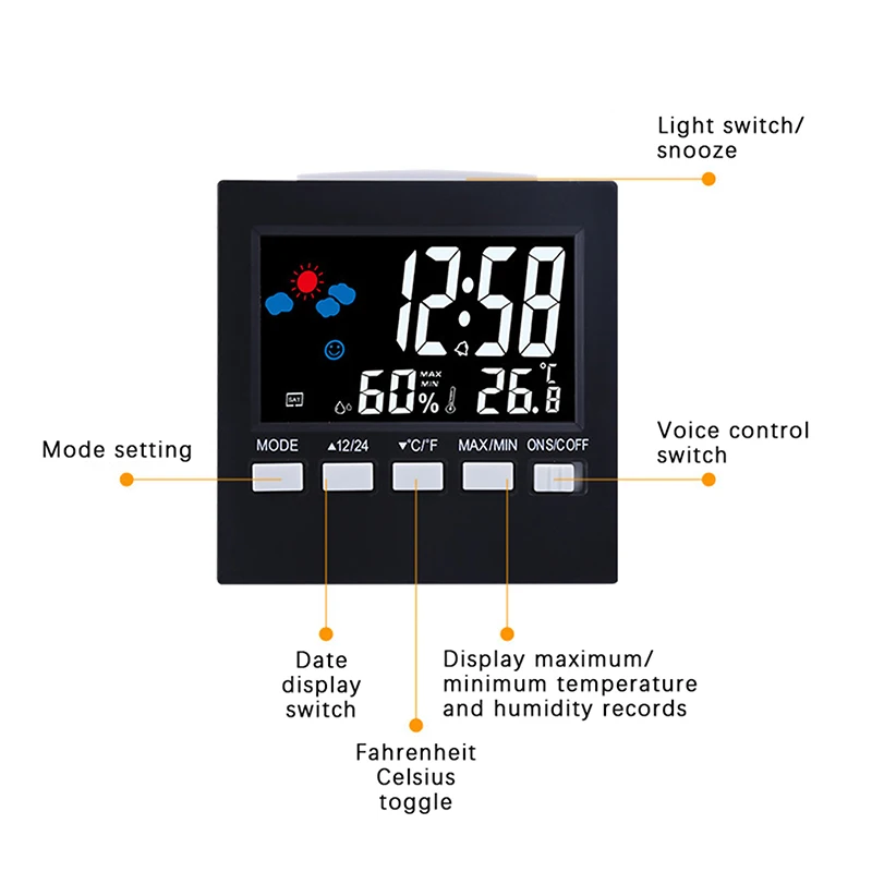 Be the first to review “Multi-functional Weather Station Clock Thermometer Hygrometer Calendar Digital LCD Display Temperature And Humidity Meter”
