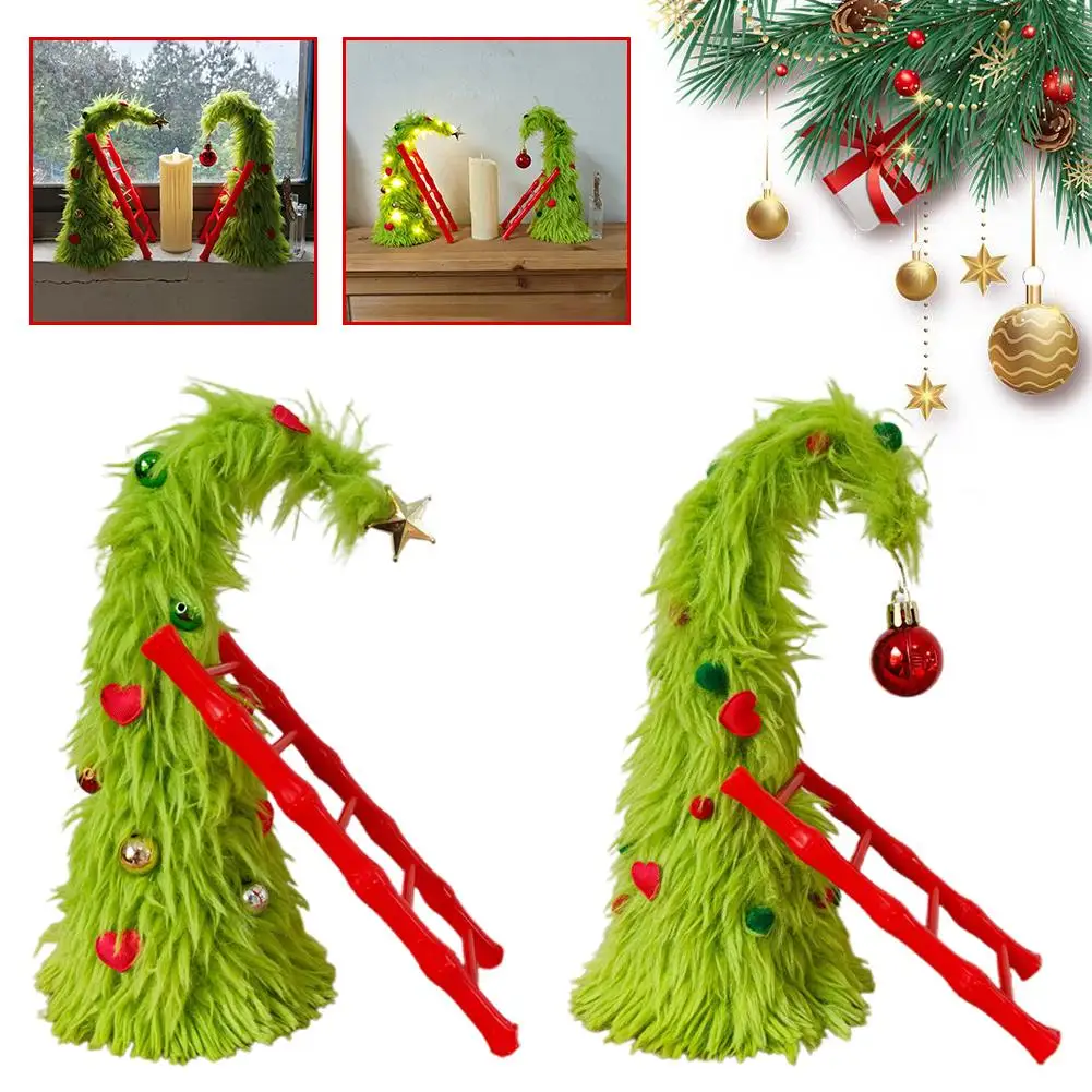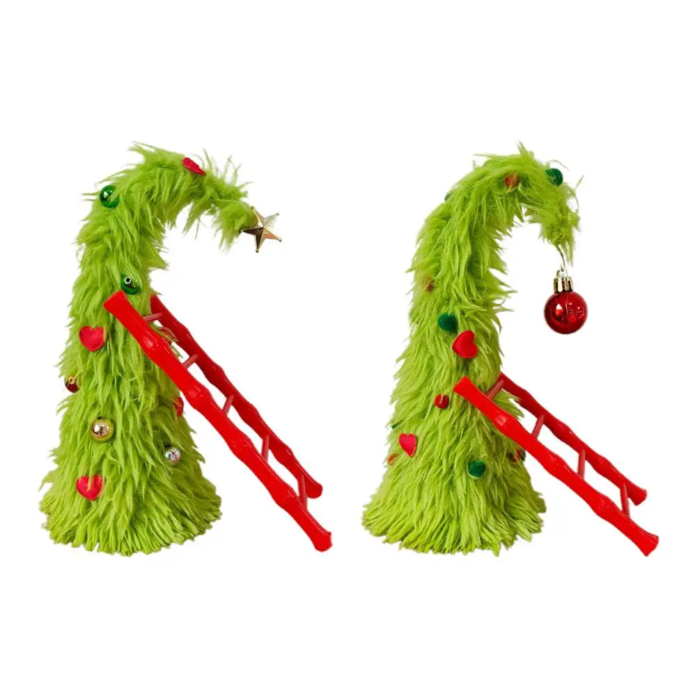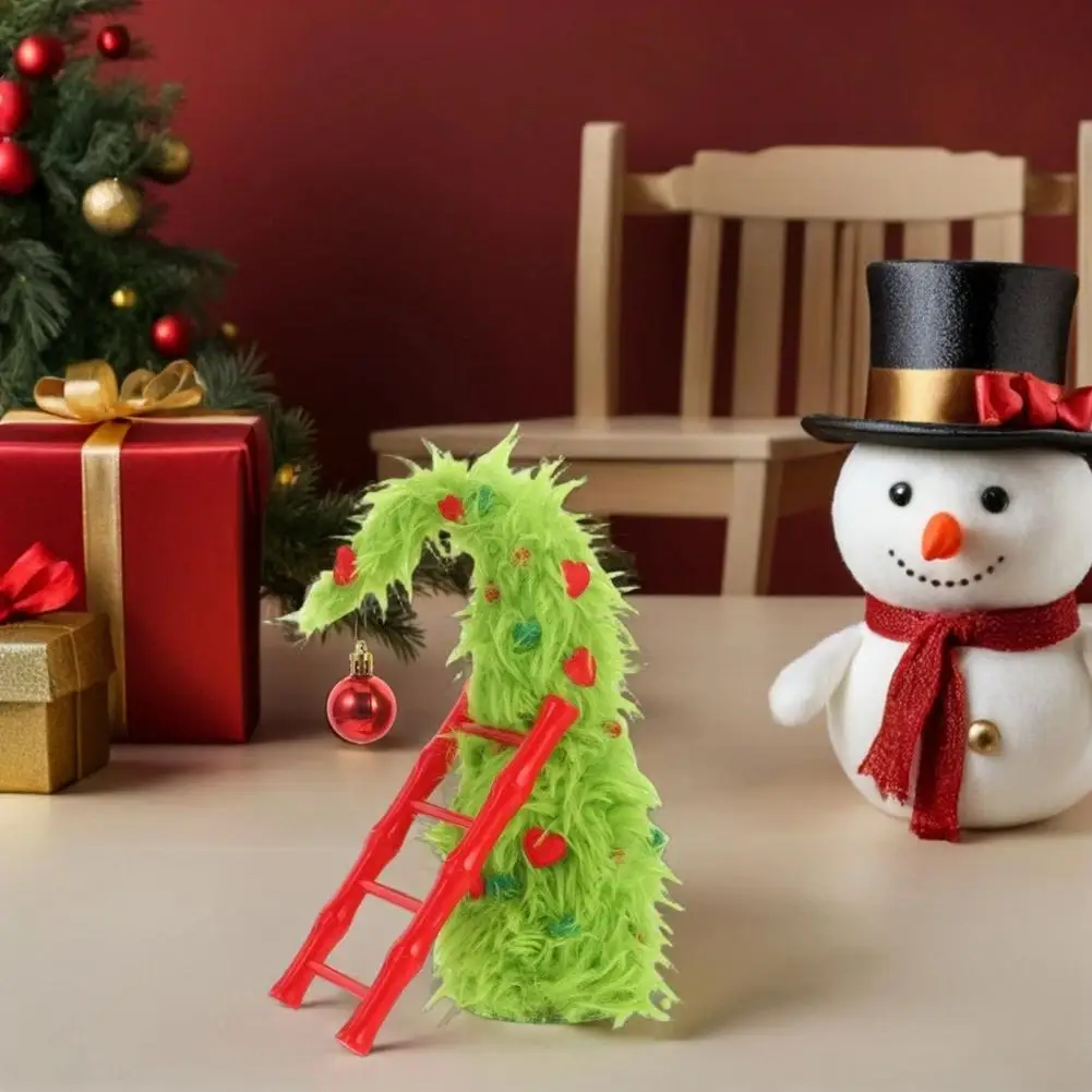 New Bendable Plush Christmas Tree Holiday Desktop Ornament Christmas Party Decorations with Mini Ladder
