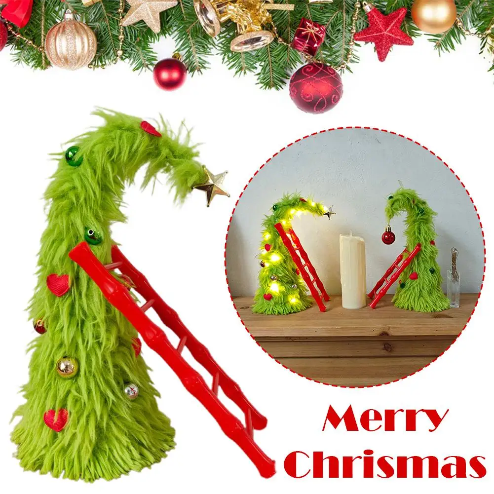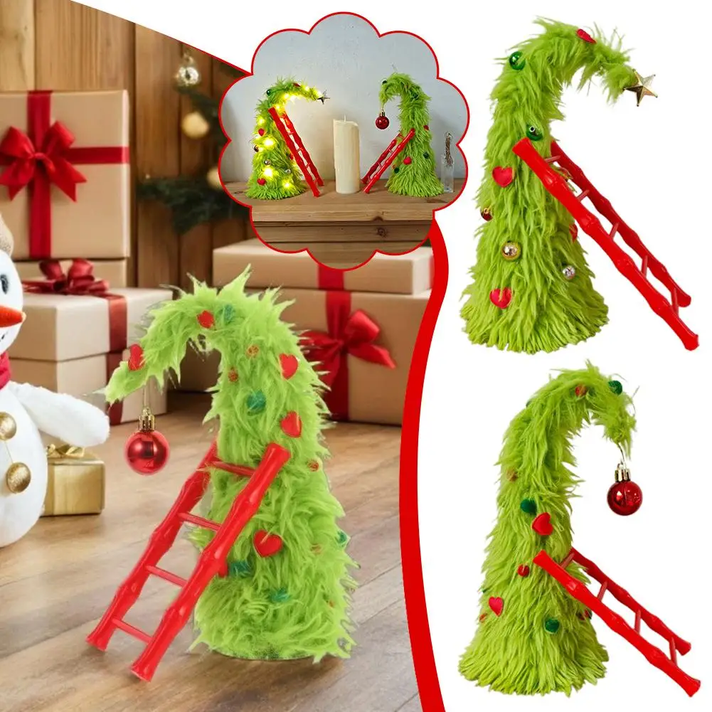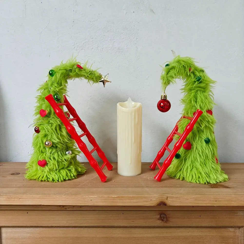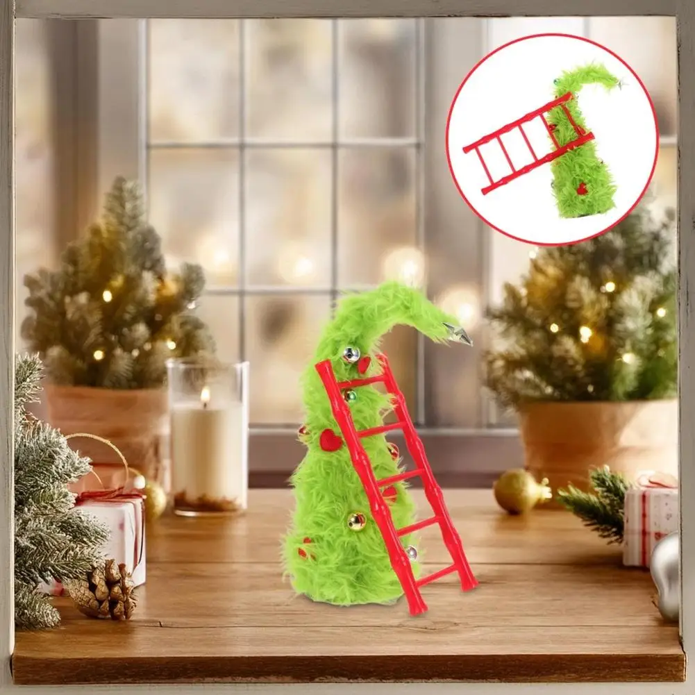 New Bendable Plush Christmas Tree Holiday Desktop Ornament Christmas Party Decorations with Mini Ladder