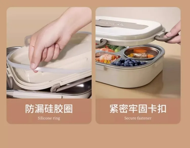 Rectangle 314 Stainless Steel Heat Preservation Lunch Box 1500~1700ml Office Workers Meal Boxes Microwave Oven Heating  Box