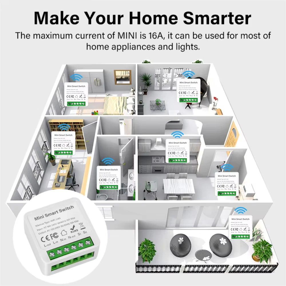 It can also be connected behind the switch to support single control switch and dual control switch. It can be directly installed in the switch box to hide the switch module. It can also be installed on the dual-control switch without affecting the use of the dual-control switch.