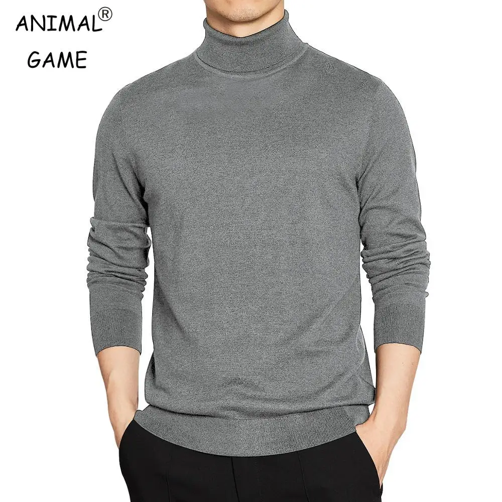 SweatwearTurtleneck Sweater Men Pullover Basic Solid High Neck Sweater Male Black Grey Knitwear Man Warm Loose Tops