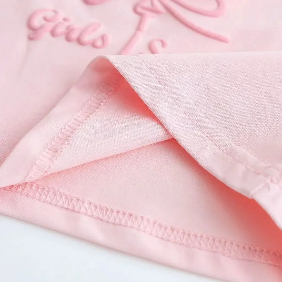 Sweet Cartoon Cotton Short Sleeve T-Shirt for Little Girls 3D Bear Design Summer New Style Children’s Casual Wear from Mainland