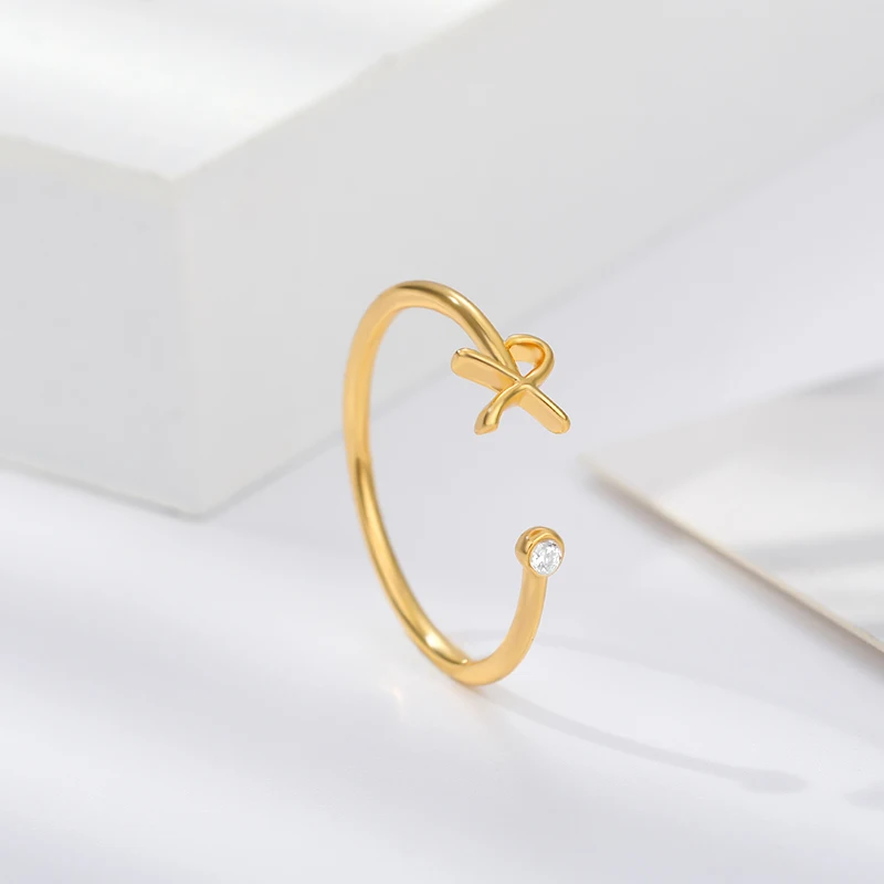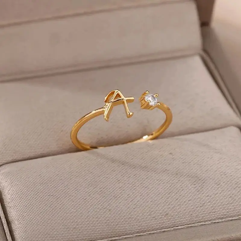 Tiny Initial Letter Rings For Women Stainless Steel Open Adjustable Initials A-Z Ring Aesthetic Wedding Jewelry bijoux femme