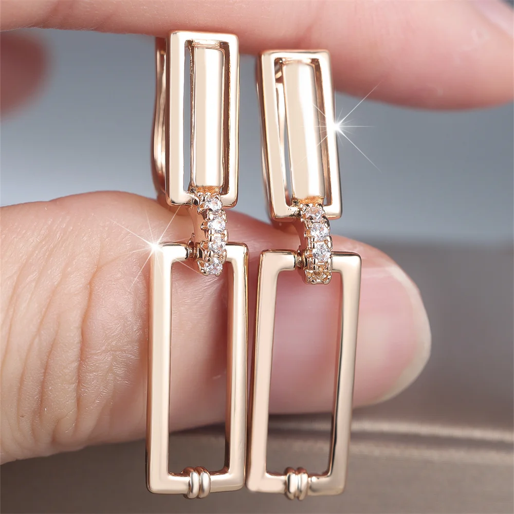 Be the first to review “Trendy White Zircon Hollow Rectangle Pendant Hoop Earrings For Women Gold Color Ear Buckle Wedding Jewelry Engagement Party Gift”