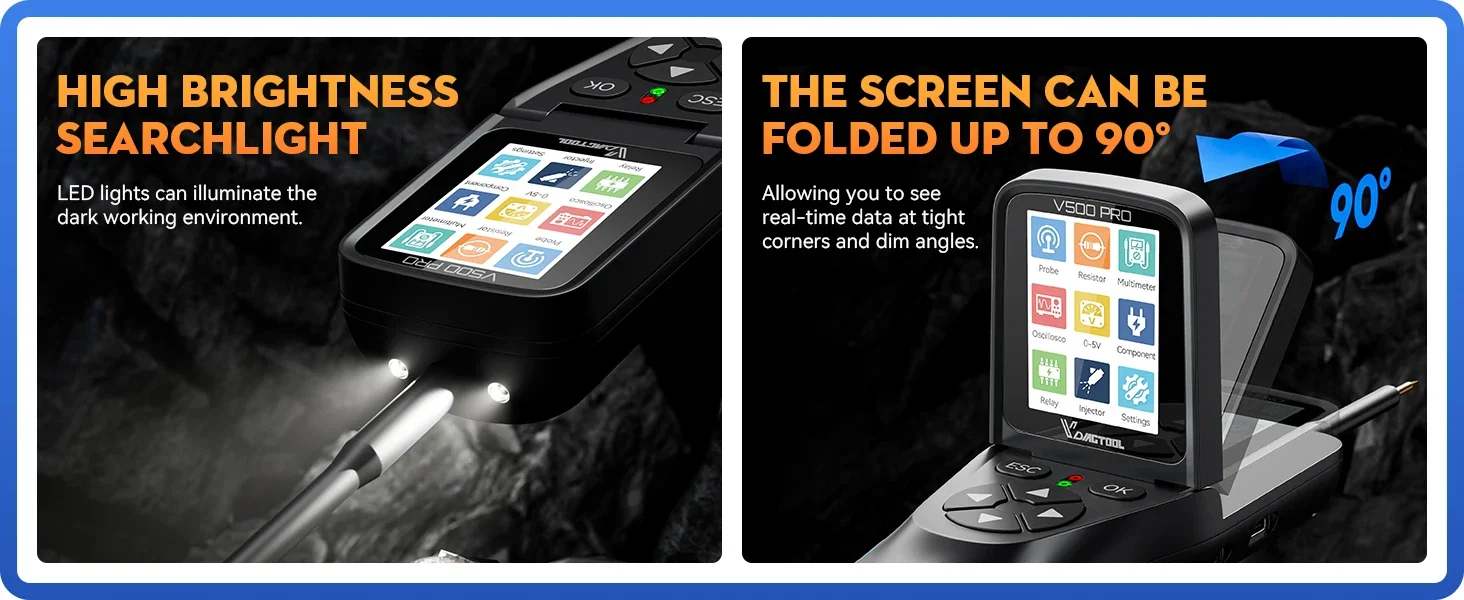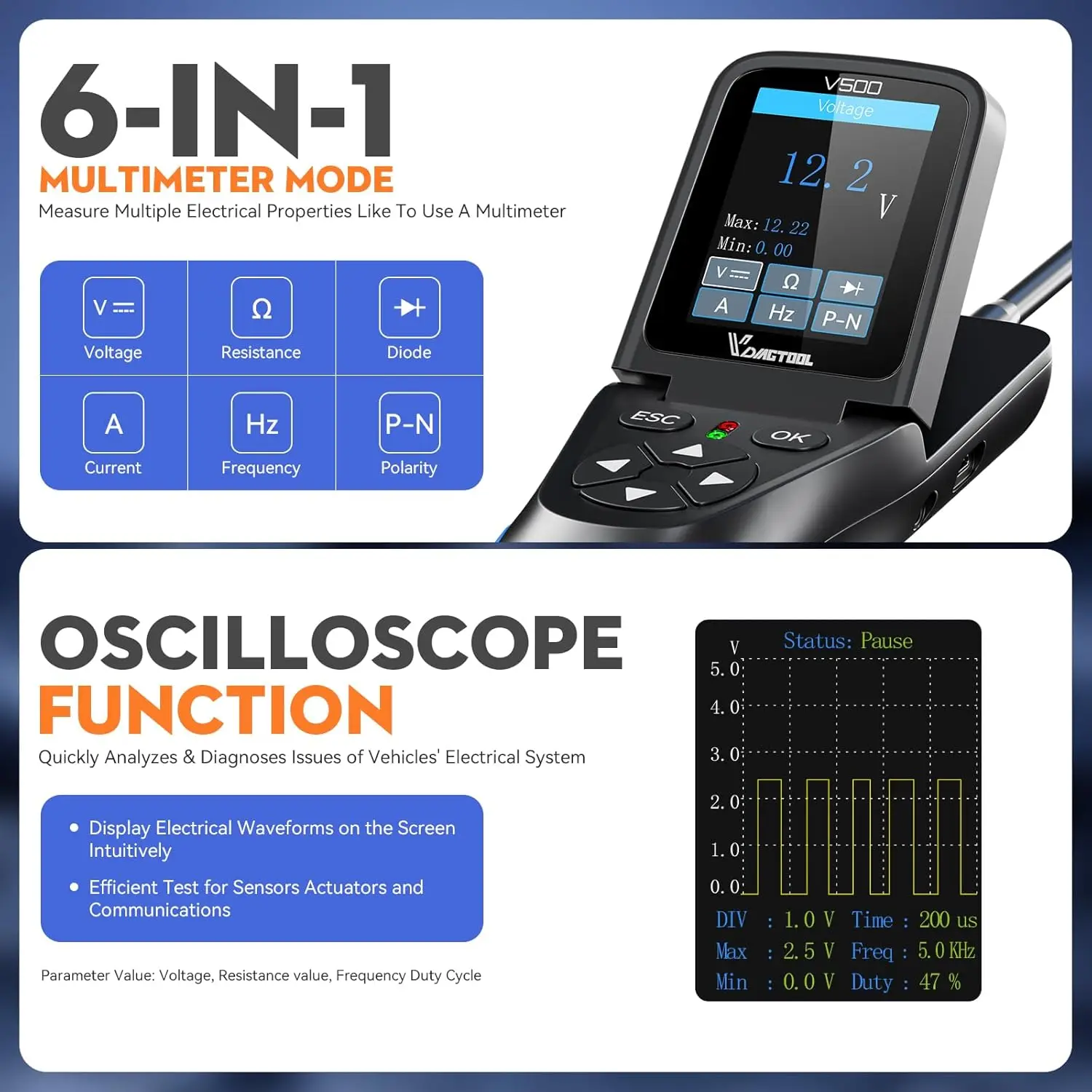 VDIAGTOOL V500 Automotive Power Circuit Probe 9-30V Car Electric Circuit Tester with Oscilloscope Multimeter Injector Relay