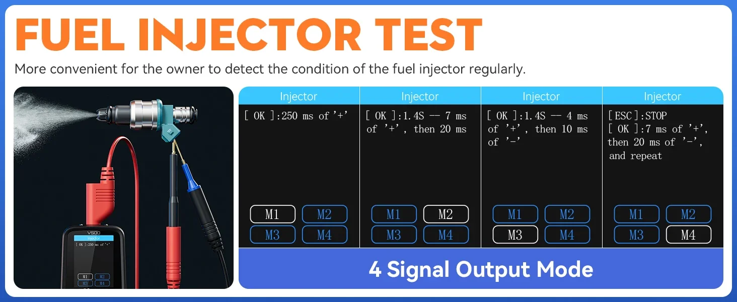 | VDIAGTOOL V500 Car Circuit Tester Function 5 | Fuel injector test |