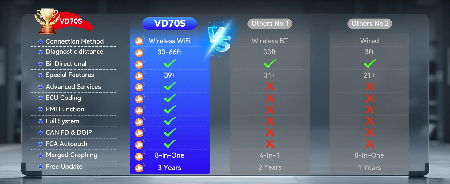 ➤With Wireless VCI, the VDIAGTOOL VD70S bt car diagnostic scan tools can quickly communicate with the vehicle without the cumbersome cables, helping you accurately diagnose vehicle issues and improve diagnostic efficiency?