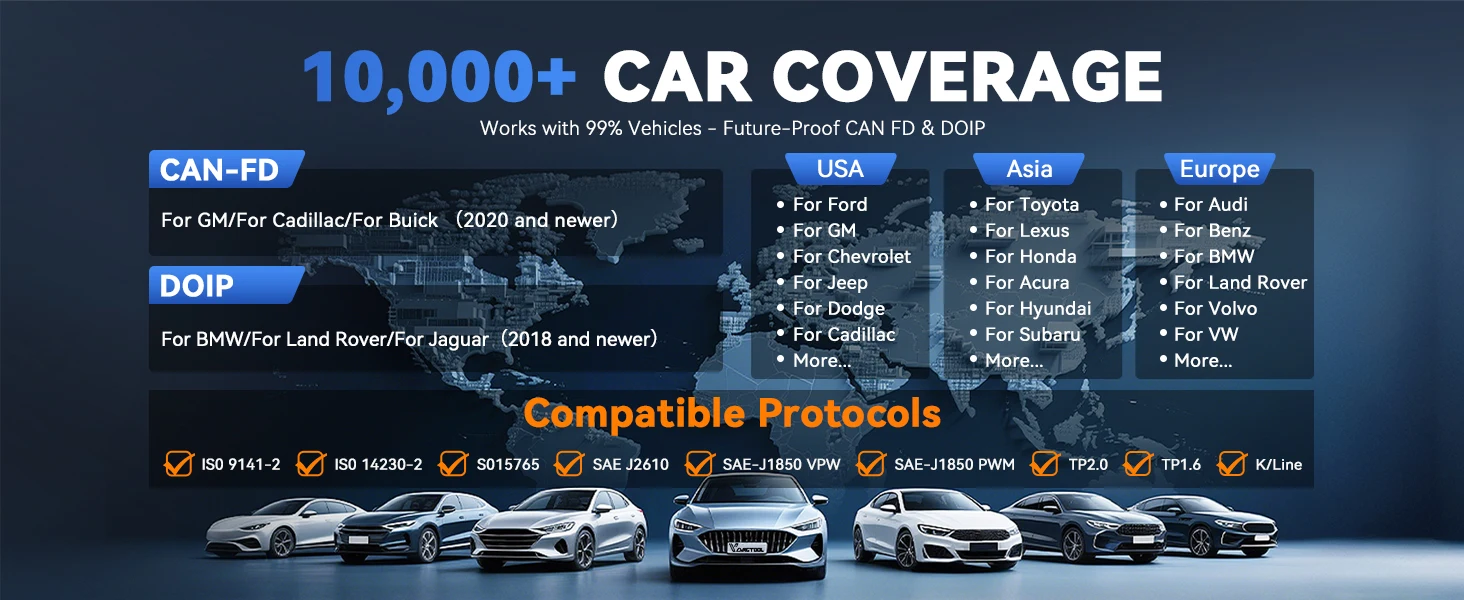 | VDAIGTOOL VD70S Vehicle Coverage | For Mercedes Benz, For BMW, For Peugeot, For Citroen, For Renault, For Volkswagen, For Ford…. |