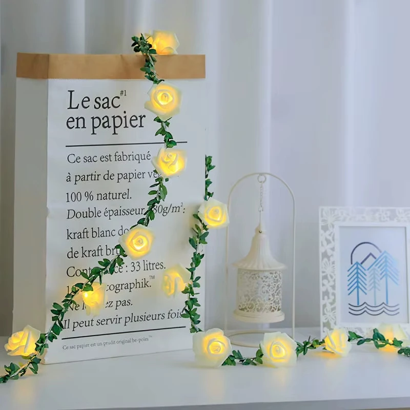 Romantic Rose Flower String Lights: This led 3D rose flower garland fairy string lights is delicately crafted with flower and leaves, will bring you a romantic ambience, beautiful pink rose flowers with soft warm white light