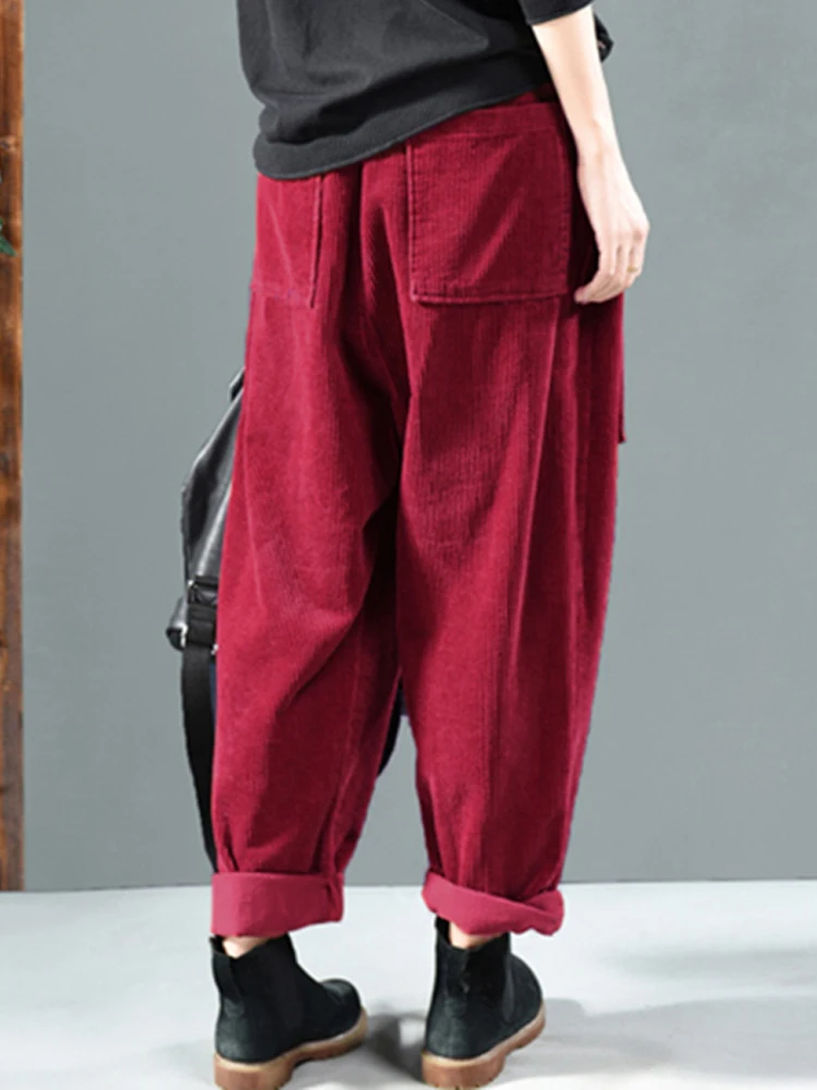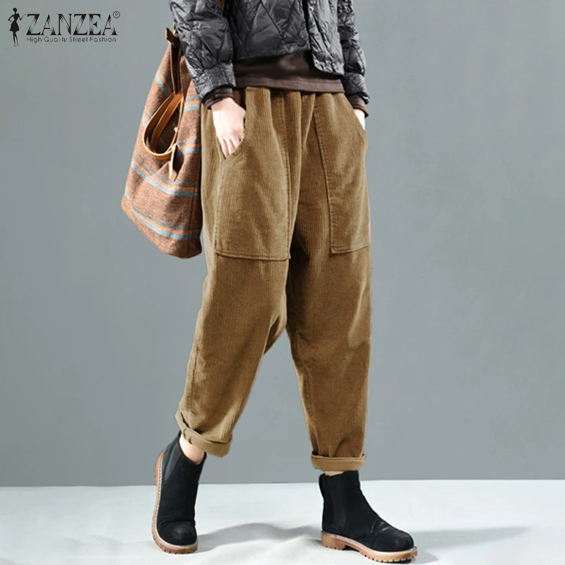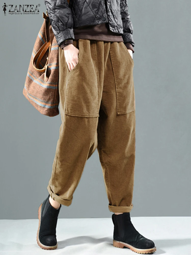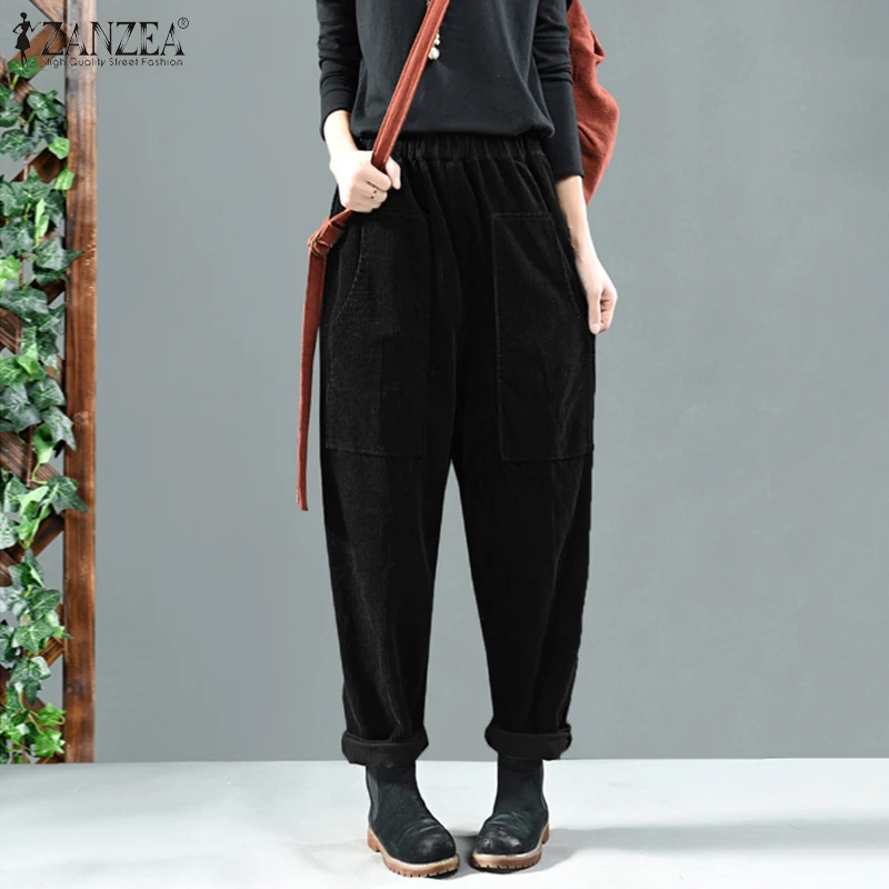 ZANZEA Autumn Women Elastic Waist Corduroy Pants Solid Harem Pants Vintage Long Trousers Pantalon Casual Loose Turnip Palazzo