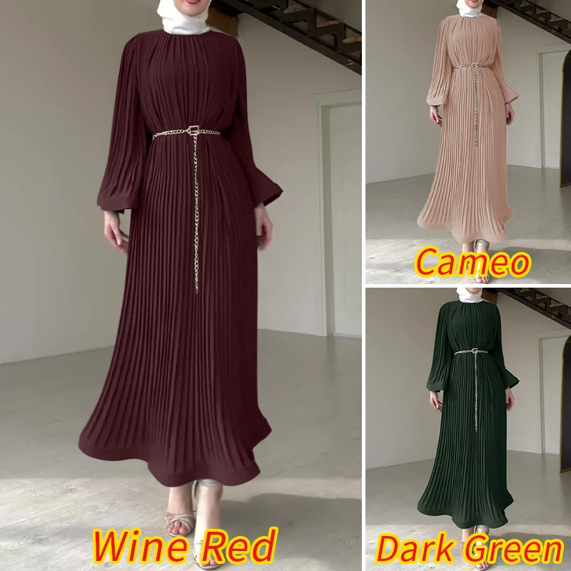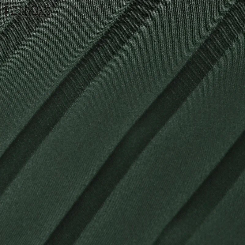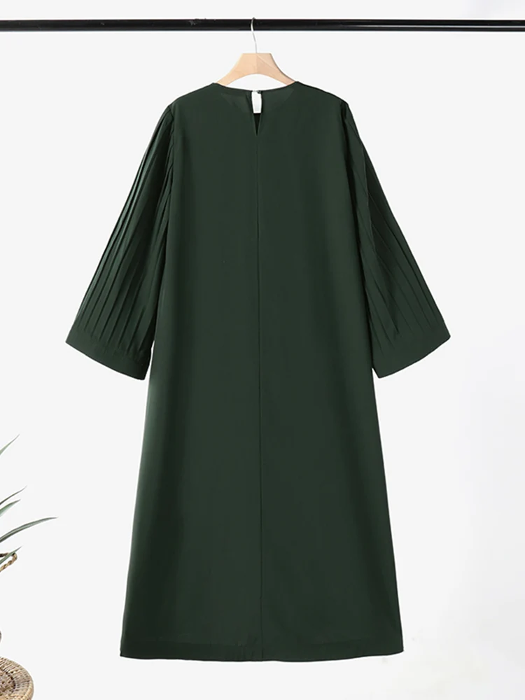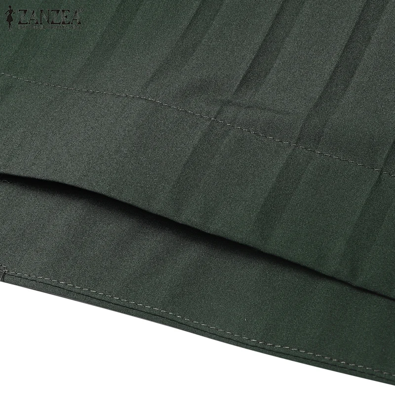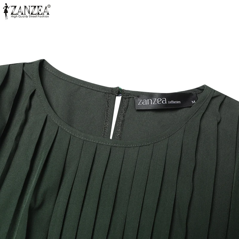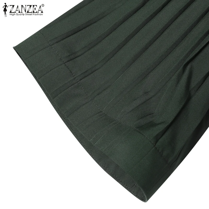 ZANZEA Spring Women Long Sleeve Pleated Dresses Vintage Solid Muslim Abaya Dress Elegant Casual Loose Sundress Islamic Clothing